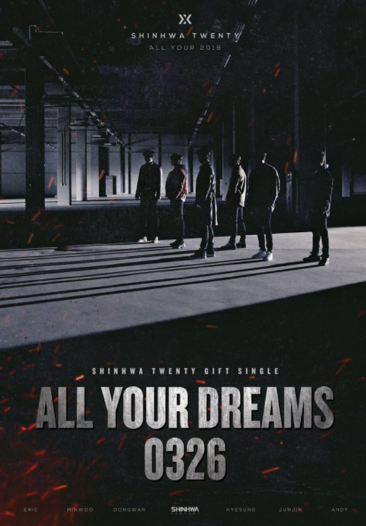 Le 12 mars, Shinhwa a révélé deux posters de groupe annonçant la sortie d’un single intitulé “All Your Dreams (2018)” qu’ils offrent en cadeau aux fans pour leur vingtième anniversaire le 26 mars.