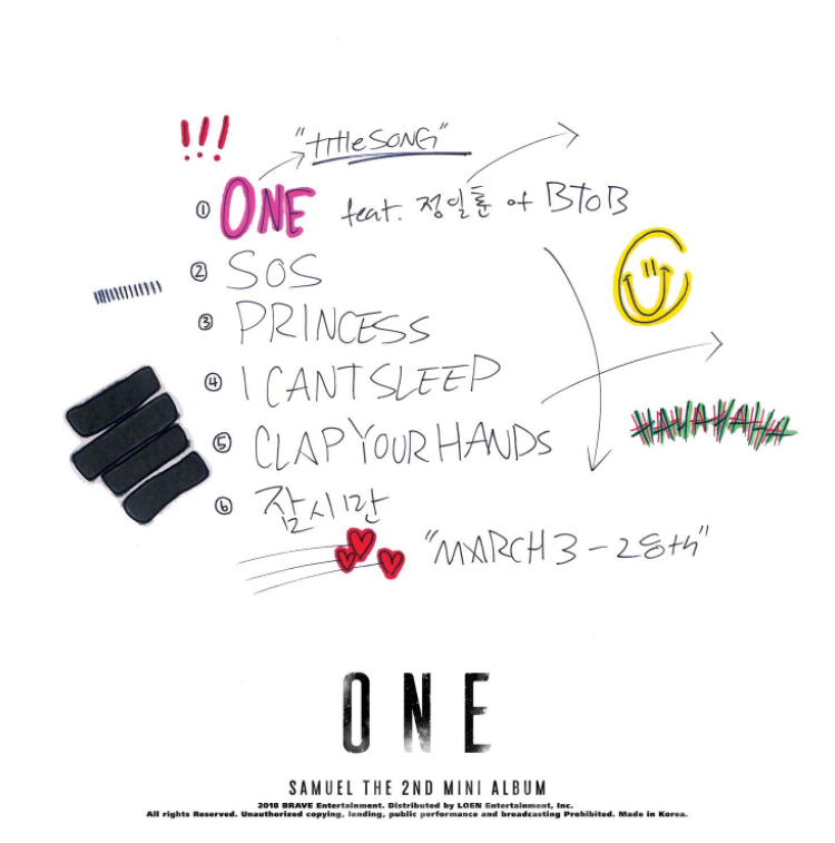 Nous vous parlions du comeback du jeune chanteur Samuel Kim qui aura lieu le 28 mars à 18h (heure coréenne) avec un second mini-album intitulé “ONE“. Nous avons plus d’informations sur la composition de celui-ci ainsi que sur la chanson titre de cet album qui se nomme également “ONE” et qui est le moreau en collaboration avec le rappeur Jung Il Hoon du groupe BTOB. Un teaser du clip a également été révélé !