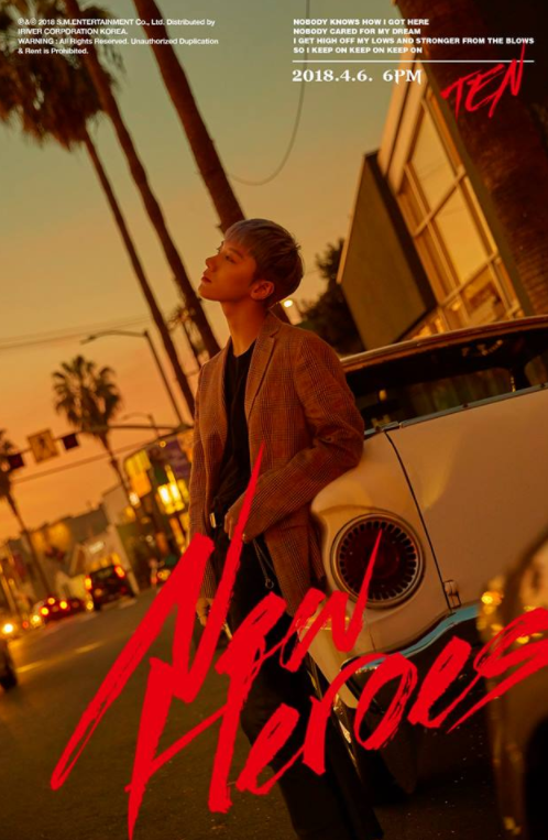 Le titre que Ten va interpréter s’intitule “New Heroes” et il sera révélé le 6 avril à 18h (heure coréenne). Cette chanson est décrite comme un mélange de style EDM et pop. Les paroles parlent de la forte volonté de devenir les nouveaux héros de cette génération peu importe les circonstances. Ten chantera “New Heroes” pour la première fois lors du prochain concert SMTOWN qui aura lieu à Dubai.