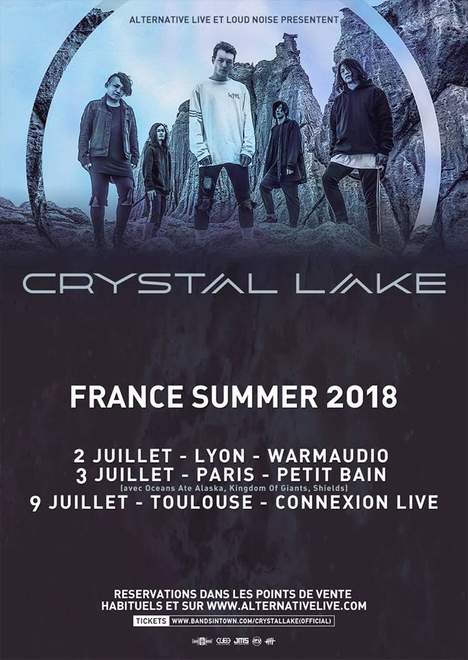 Voici le poster officiel de la partie française “France Summer 2018” de la nouvelle tournée européenne des CRYSTAL LAKE :