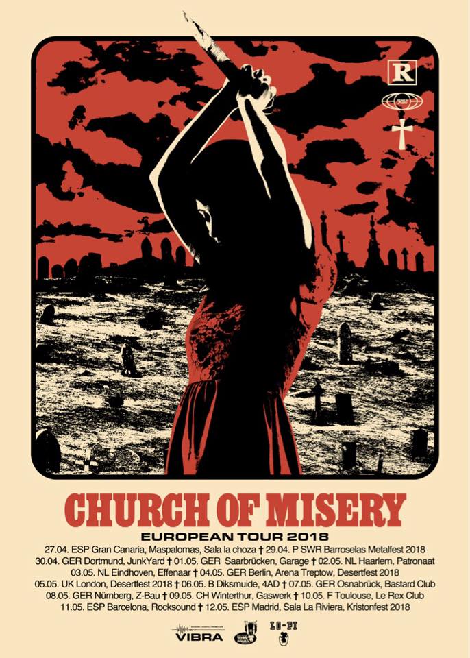 Mais ce qui n’est pas indiqué sur l’affiche, c’est que Church of Misery participeront également à un festival incontournable en France : le Hellfest ! La formation passera le vendredi 22 juin sur la scène Valley du festival ; en ce qui concerne les horaires exactes, elles seront données plus tard sur le site officiel du Hellfest.