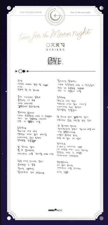 Le retour du groupe GFRIEND approche de plus en plus c’est pourquoi après nous avoir révélé plusieurs séries de photos et une vidéo ainsi que la tracklist et un aperçu des paroles de leur chanson titre “Time for the moon night“, les six jeunes femmes nous ont dévoilé un nouveau teaser du clip de cette chanson titre ainsi qu’un medley des autres pistes de ce sixième mini album et les paroles de celles-ci.