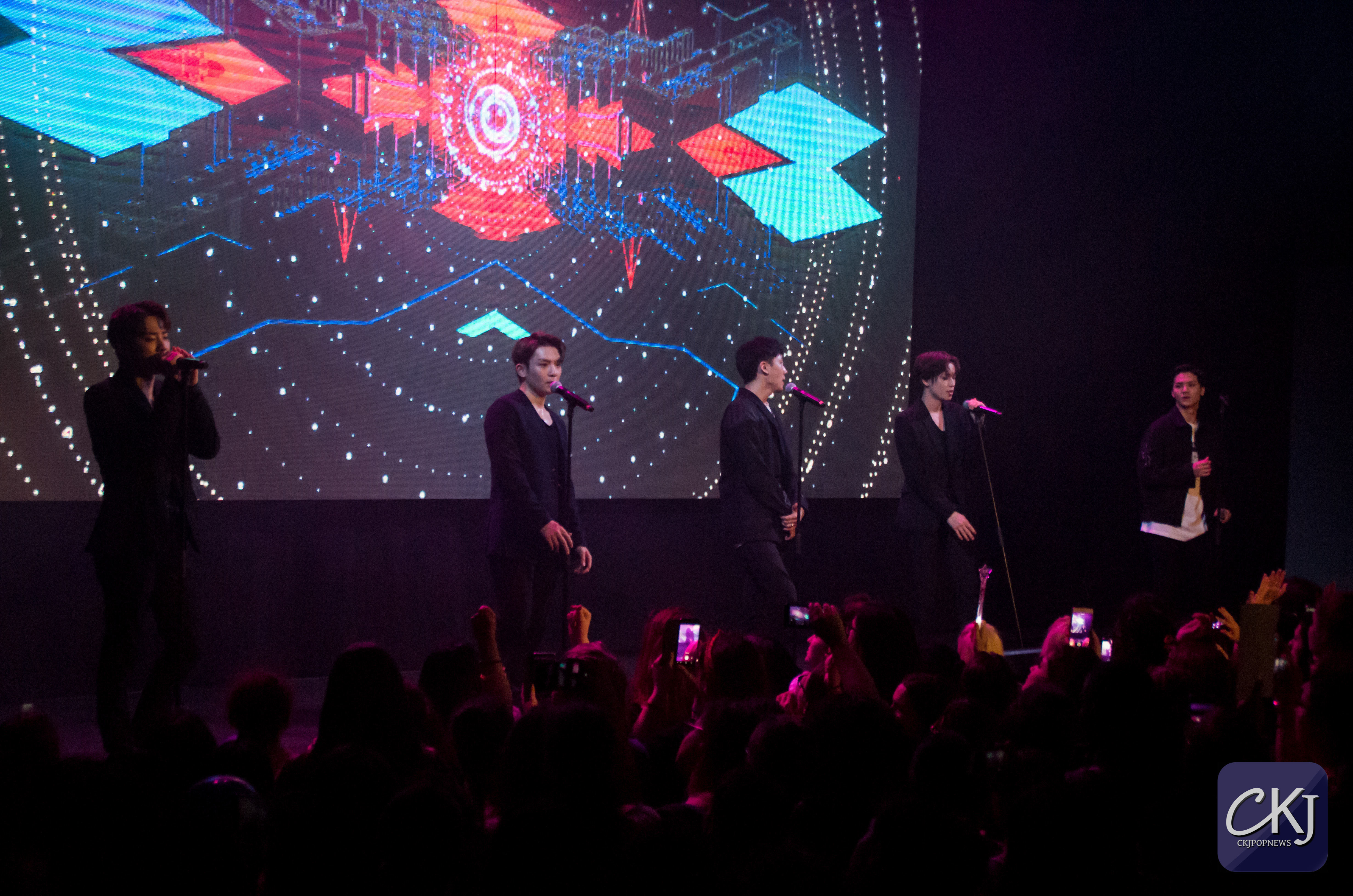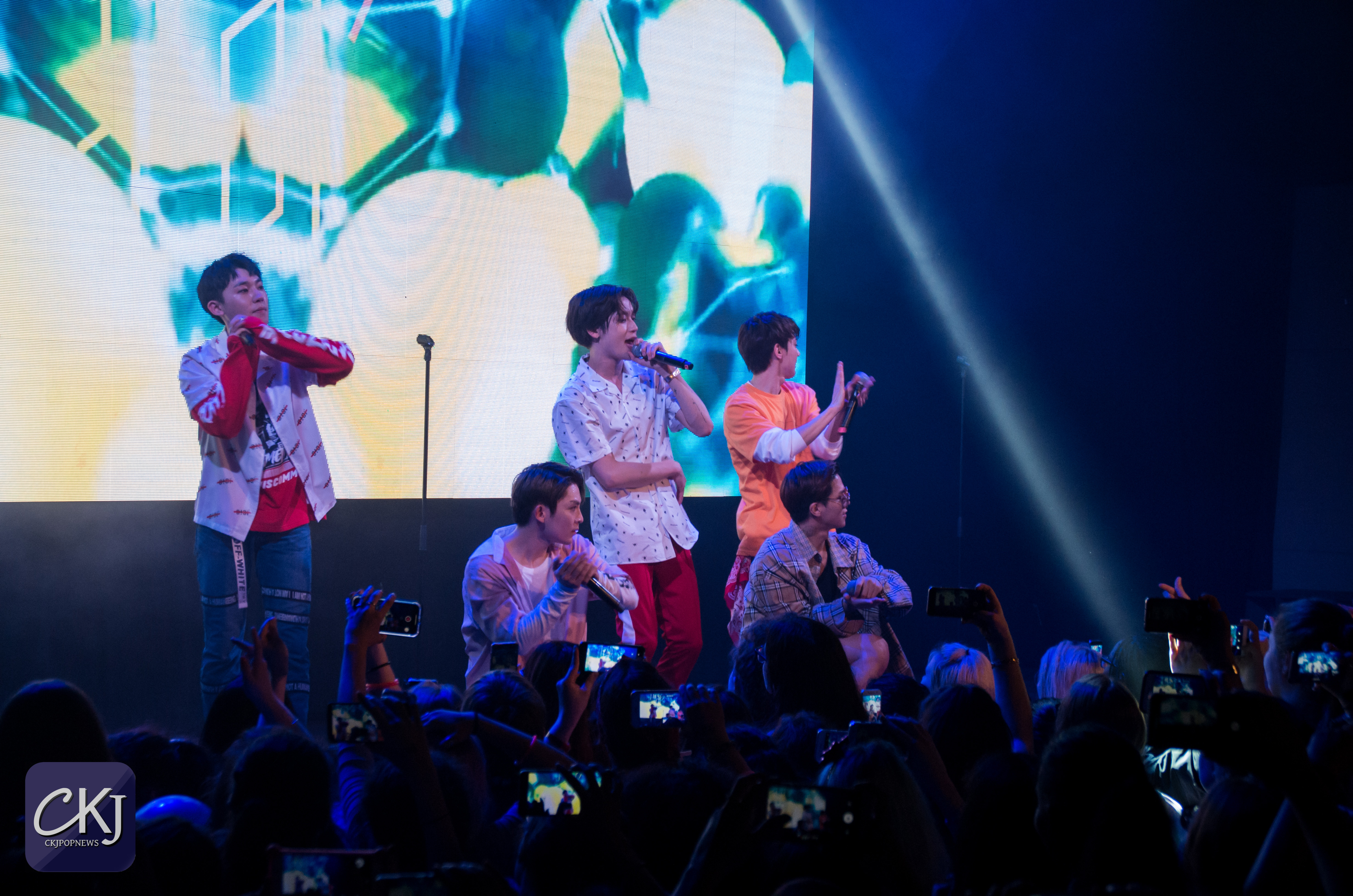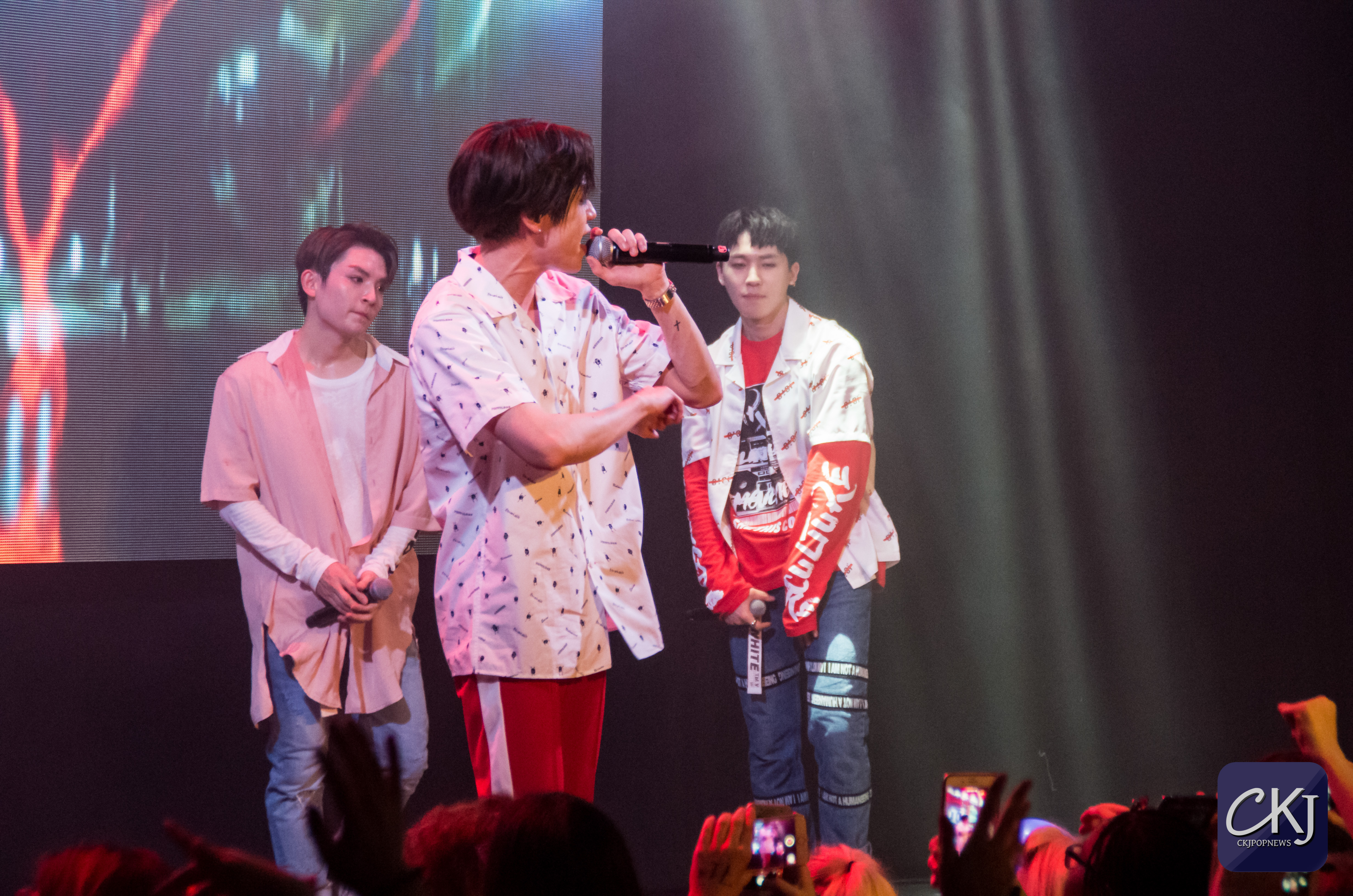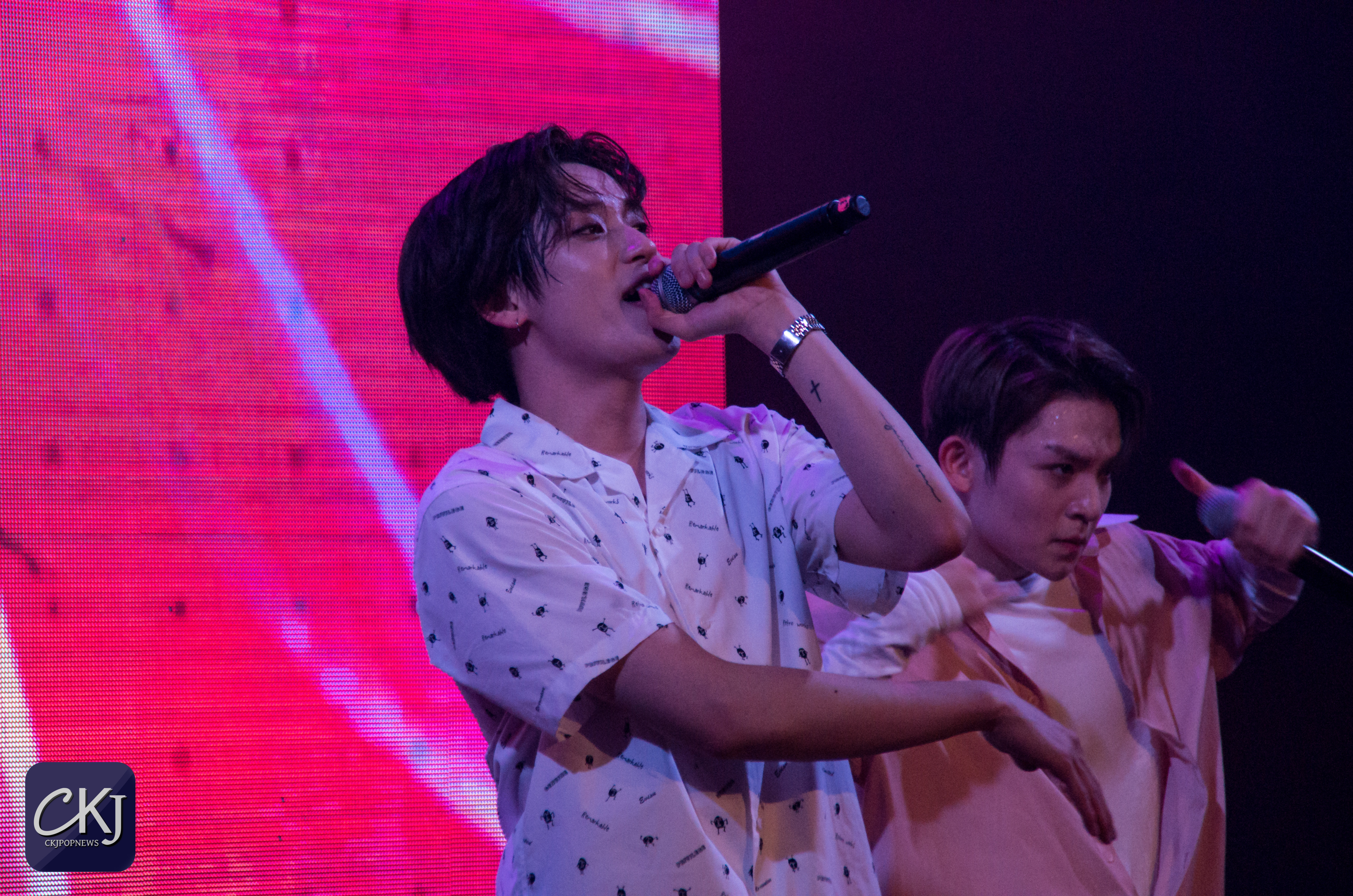 Cette fois-ci, c’est le chant qui a été mis en avant et non plus la danse. Avec des pieds de micro, les garçons ont pu se reposer un peu et chanter confortablement en regardant leurs fans en face à face.