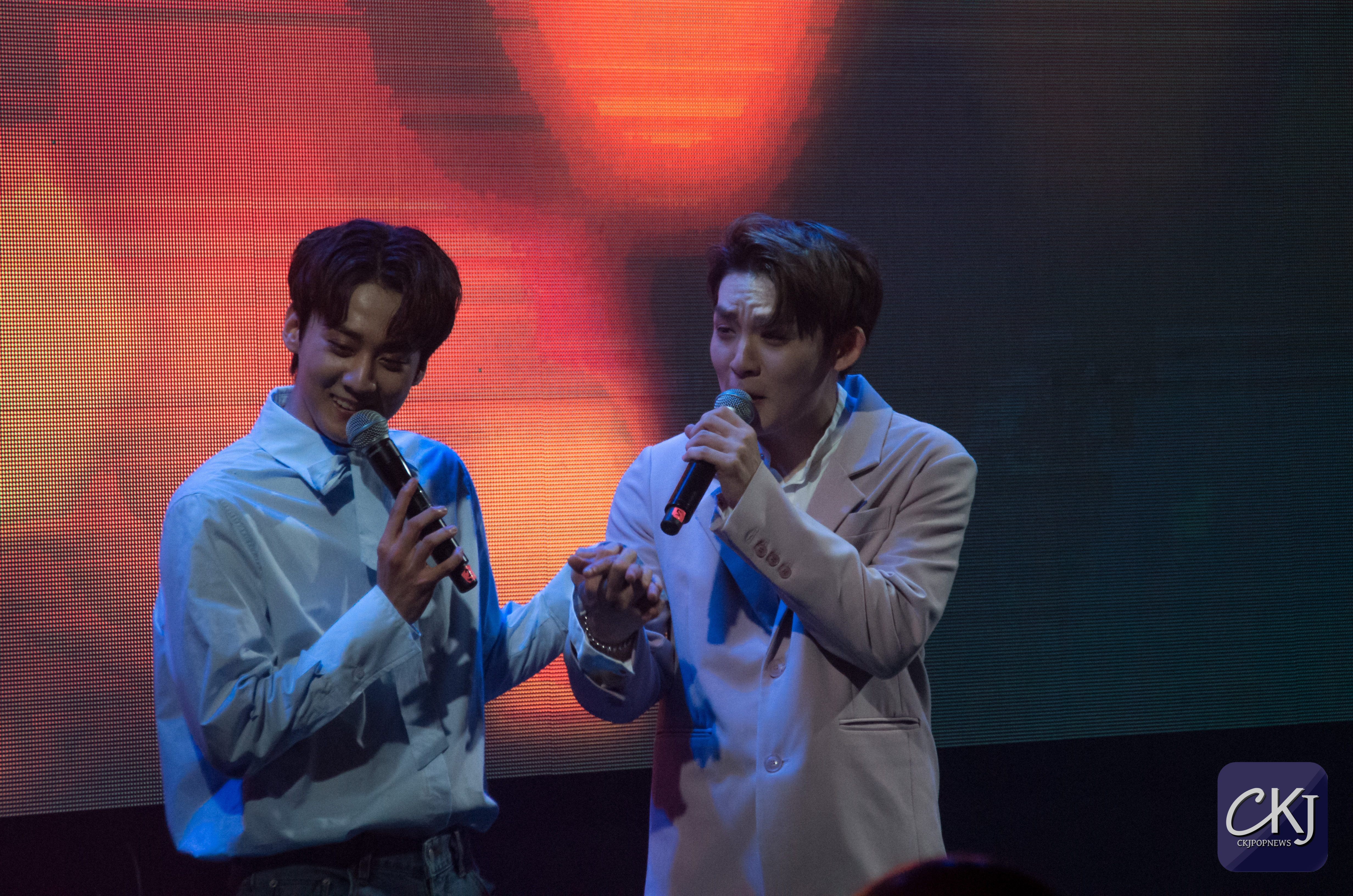 Affublés de nouvelles tenues, Chunji et Ricky sont revenus seuls tous les deux, le temps d’un duo avec un chant tout doux grâce à “Hold Your Hand“. Cette chanson est sortie il y a quelques mois par Chunji, qui interprète de base ce titre avec Eunha du groupe GFRIEND. Les deux idoles se sont montrés joueur l’un envers l’autre à Paris. Ricky a même rejeté la déclaration d’amour de Chunji, sous les rires amusés des fans.