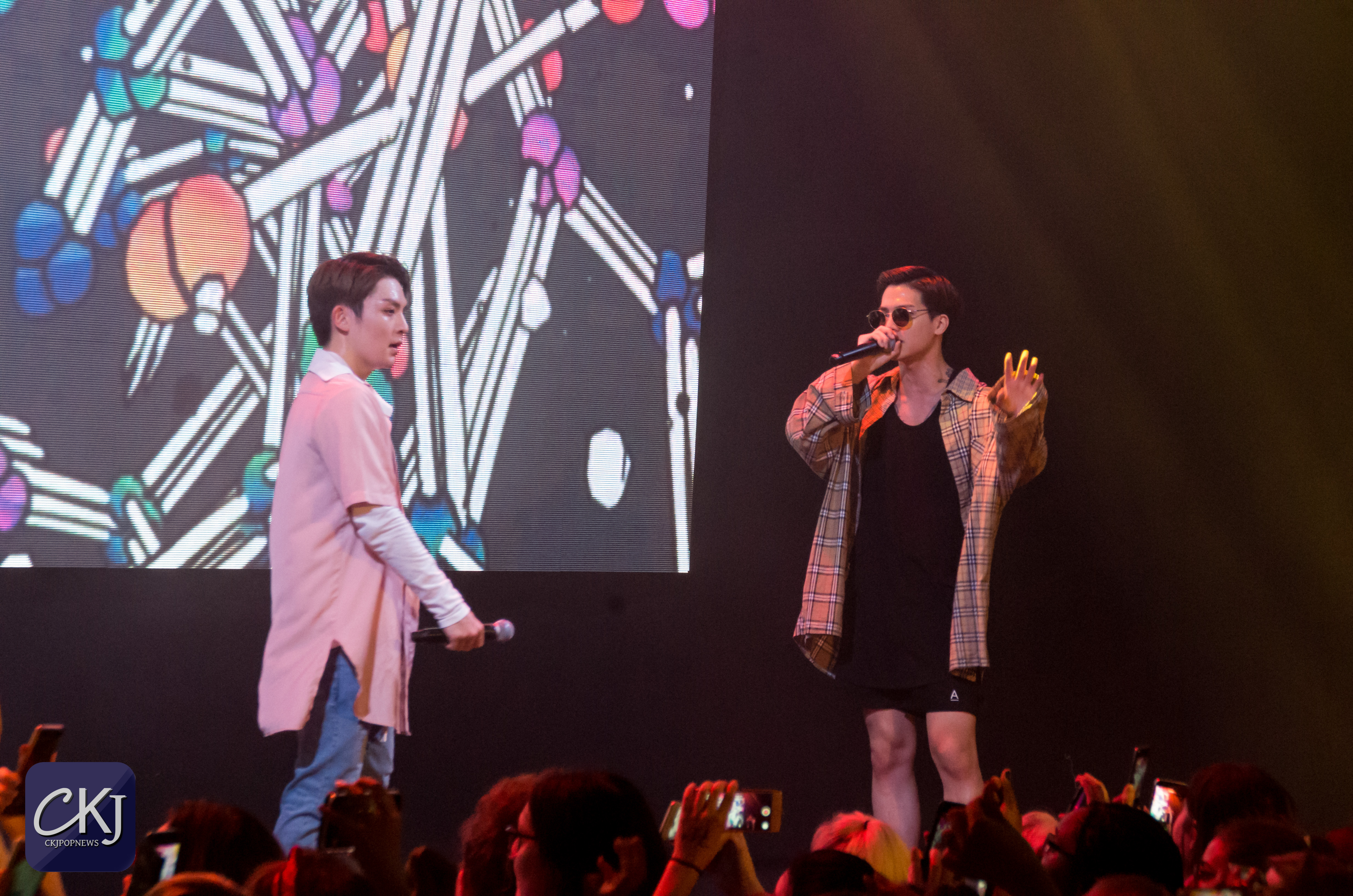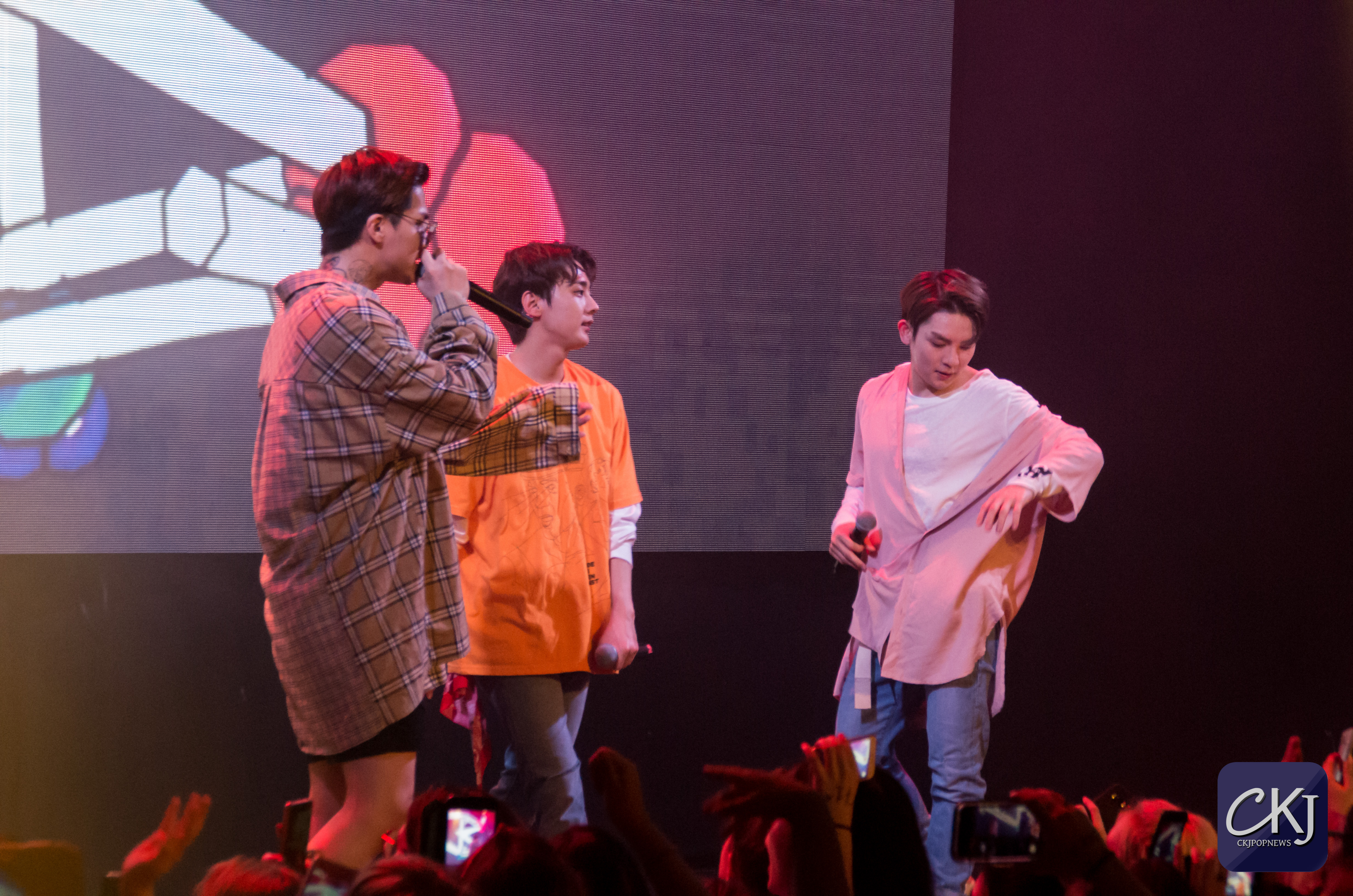 Changjo a profité de l’arrivée de la chanson suivante, “No More Perfume On You“, pour apprendre à danser aux fans. Ravis de cette interaction spéciale avec l’artiste, les fans ont rempli leur devoir avec brio et ont donc dansé en même temps que les Teen Top sur ce classique incontournable du groupe. Que vous les ayez déjà vu en concert ou que vous les ayez découvert pour la première fois au YOYO, Teen Top ont su prouver qu’ils peuvent assurer le show et divertir leurs fans ! Ils ont continué sur cette lancée avec “I Love Girl” et ses fameux mouvements de danse sexy qui ont fait plaisir aux fans, un autre extrait de leur dernier album en date.
