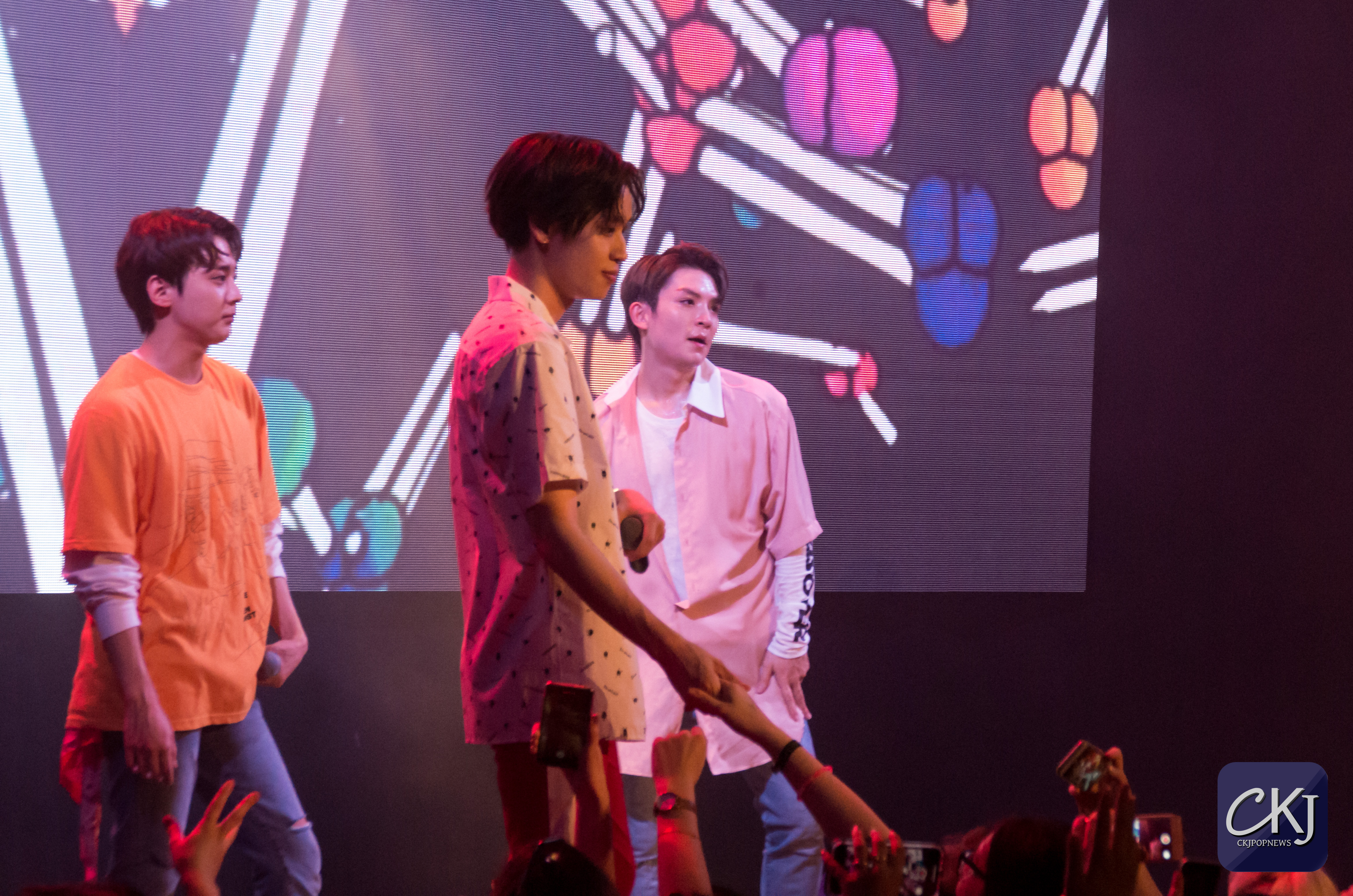 Teen Top ont finalement pris quelques secondes pour souffler et ont repris avec “Confusing“, pendant laquelle les garçons se sont amusés avec les fans des premiers rangs, notamment Niel.