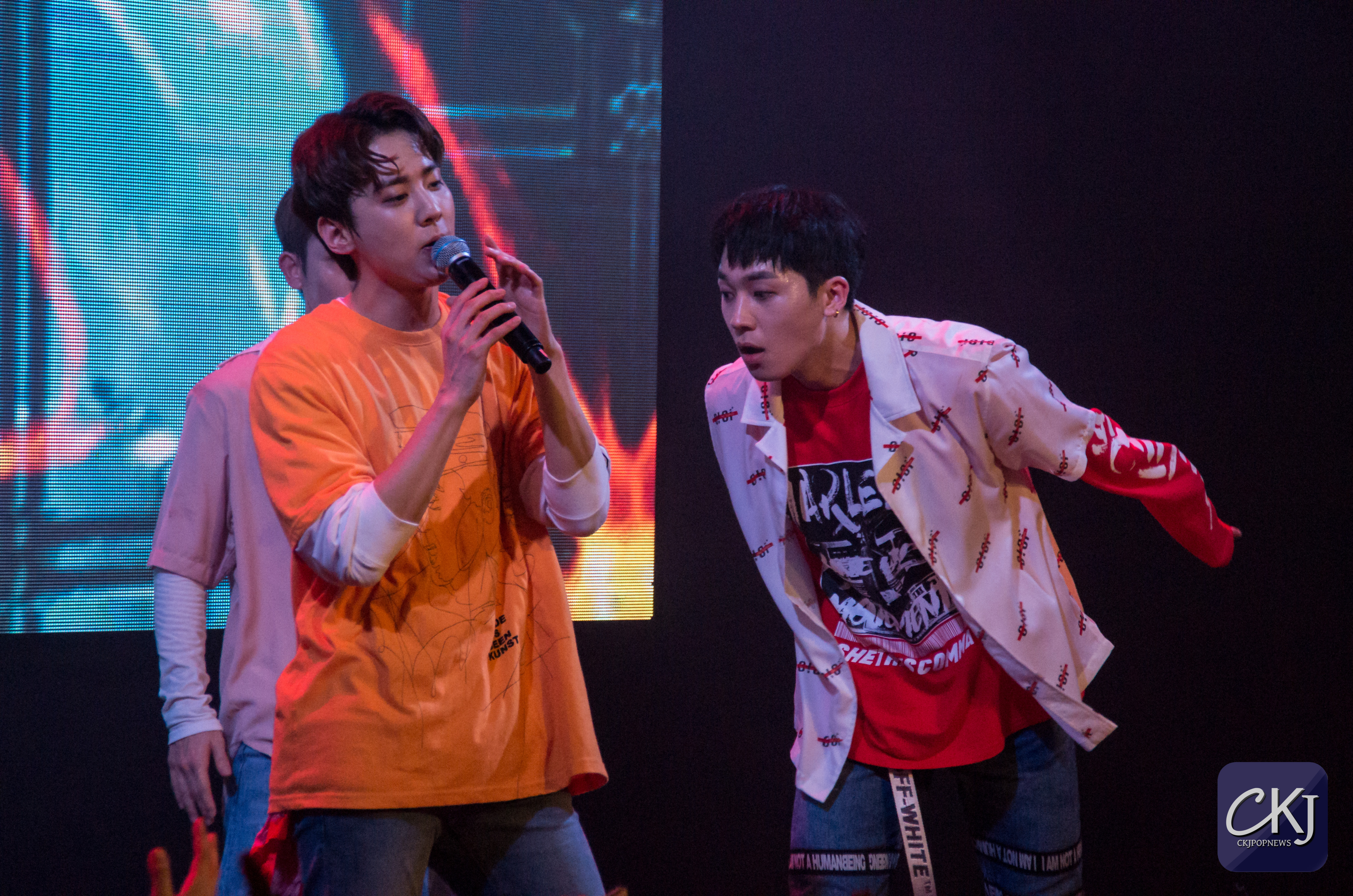 Ce sont les Hyeonaegie qui ont remporté la compétition et qui ont donc fait office de première partie au YOYO. Les quatre danseurs ont montré beaucoup d’énergie à reproduire la chorégraphie de “Rocking” des Teen Top. Les fans ont semblé apprécier cette mise en bouche de ce qui les attendait un peu plus tard dans la soirée.