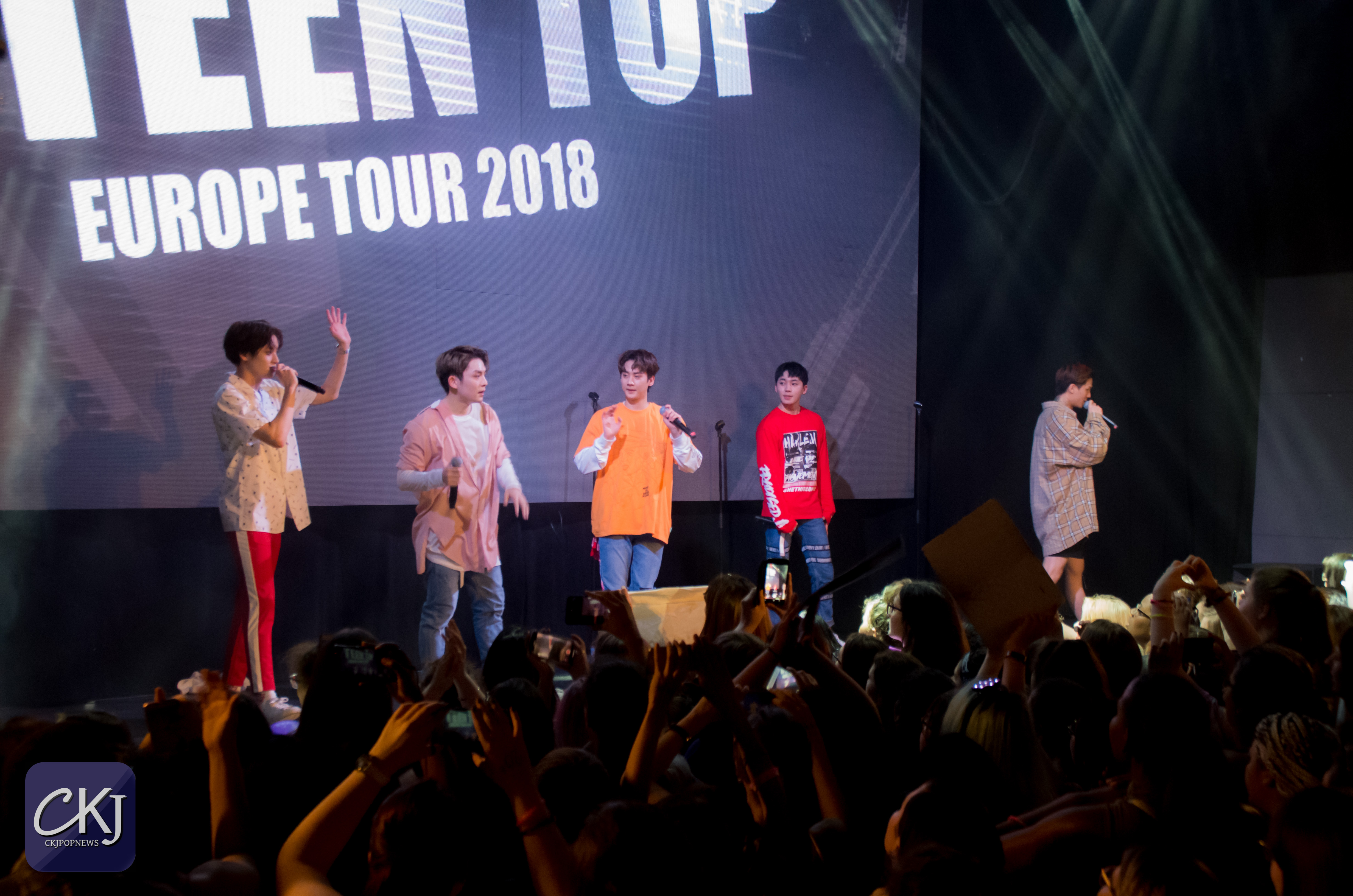 Pour ce troisième concert parisien des Teen Top, les membres Ricky, Niel, C.A.P, Changjo et Chunji sont finalement sortis de scène à 22h30, après environ deux heures de concert. Ils ont d’ailleurs eu un peu de mal à faire un dernier au revoir à leurs Angels françaises et ont continué de leur faire signe de la fenêtre des loges en haut de la salle.