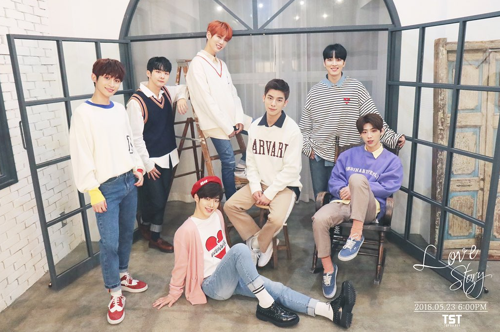 Le groupe Top Secret (TST) composé de Ain, K, Yohan, Wooyoung, Junghoon, Yonghyun et Kyungha qui a débuté le 4 janvier 2017 avec le mini album “Time’s Up” s’apprête à faire son retour en Corée du Sud le 23 mai prochain à 18h (heure coréenne) avec un nouveau single album intitulé “LOVE STORY“. Celle-ci a de nouveau été produite par Sweetune avec qui ils ont déjà collaboré sur la chanson de leurs débuts et qui a également travaillé avec KARA, INFINITE, BOYFRIEND, etc….Le clip a été réalisé par Lee Sagan spécialiste du genre. Ain a participé à la création de la chorégraphie et Wooyoung, Junghoon et Kyungha ont co-écris les paroles.