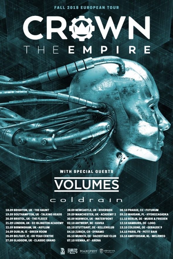 En effet, cette fois-ci coldrain seront en Europe en tant que première partie du groupe américain Crown The Empire, et partageront également la scène avec le groupe Volumes. Voici le poster officiel de cette tournée :