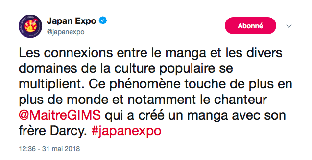 Ce matin a eu lieu la conférence de presse Japan Expo 2018, qui a dévoilé de nombreuses surprises, mais on vous avoue qu’on avait pas vu venir celle-ci ! Le rappeur et chanteur français Maître Gims a été annoncé parmi la programmation officielle du festival.