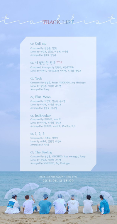Le groupe BTOB s’apprête à sortir le 18 juin à 18h (heure coréenne) son onzième mini album intitulé “This is Us” qui contiendra sept morceaux dont la chanson titre “너 없인 안 된다” (“I can”t without you” traduction littérale) composée par Hyunsik et EDEN et écrite par ces derniers avec Minhyuk, Peniel et Ilhoon.