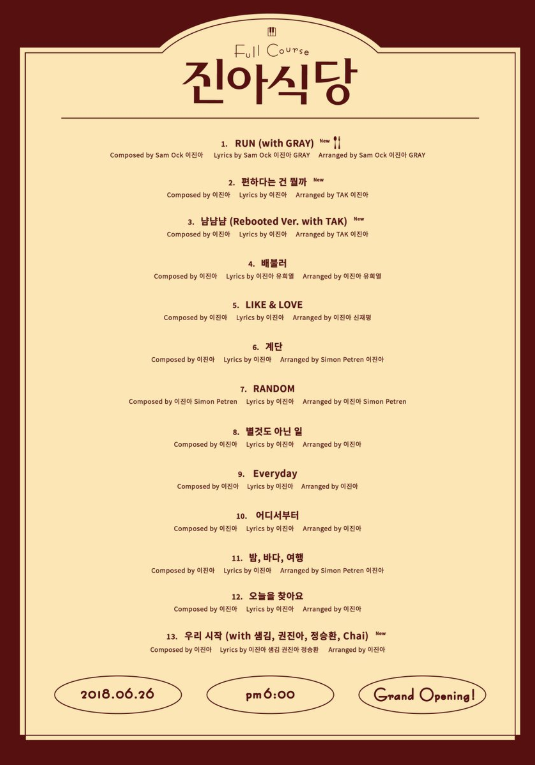La chanteuse et compositrice Lee Jinah vient de faire son comeback avec le full album “Jinah Restaurant Full Course” dont la chanson titre d’un style jazz et EDM s’intitule “Run” est interprétée en collaboration avec GRAY qui ne rappe pas mais chante cette fois-ci. Cette chanson est co-composé et co-écrite par les deux chanteurs avec l’aide de Sam Ock.