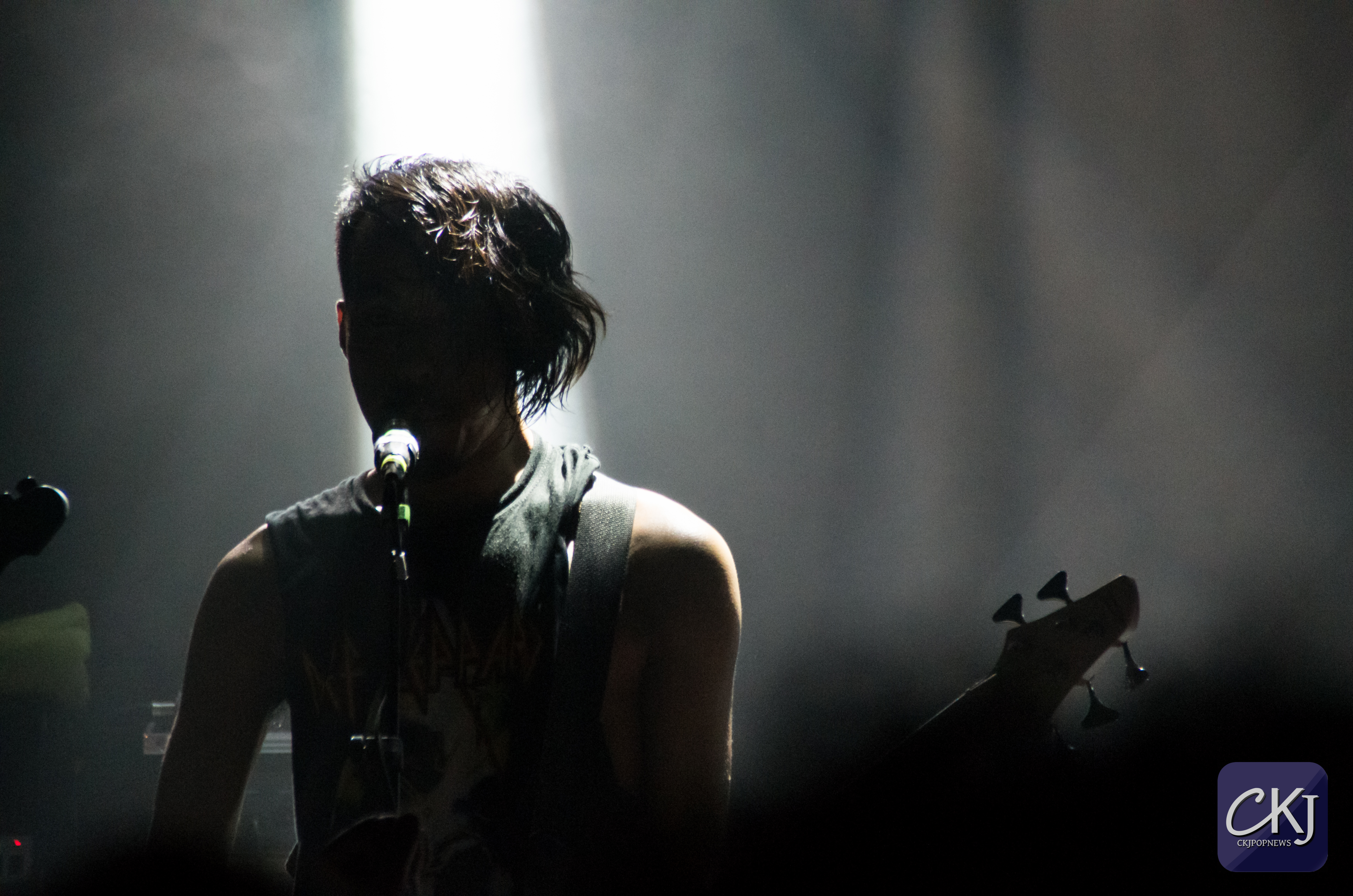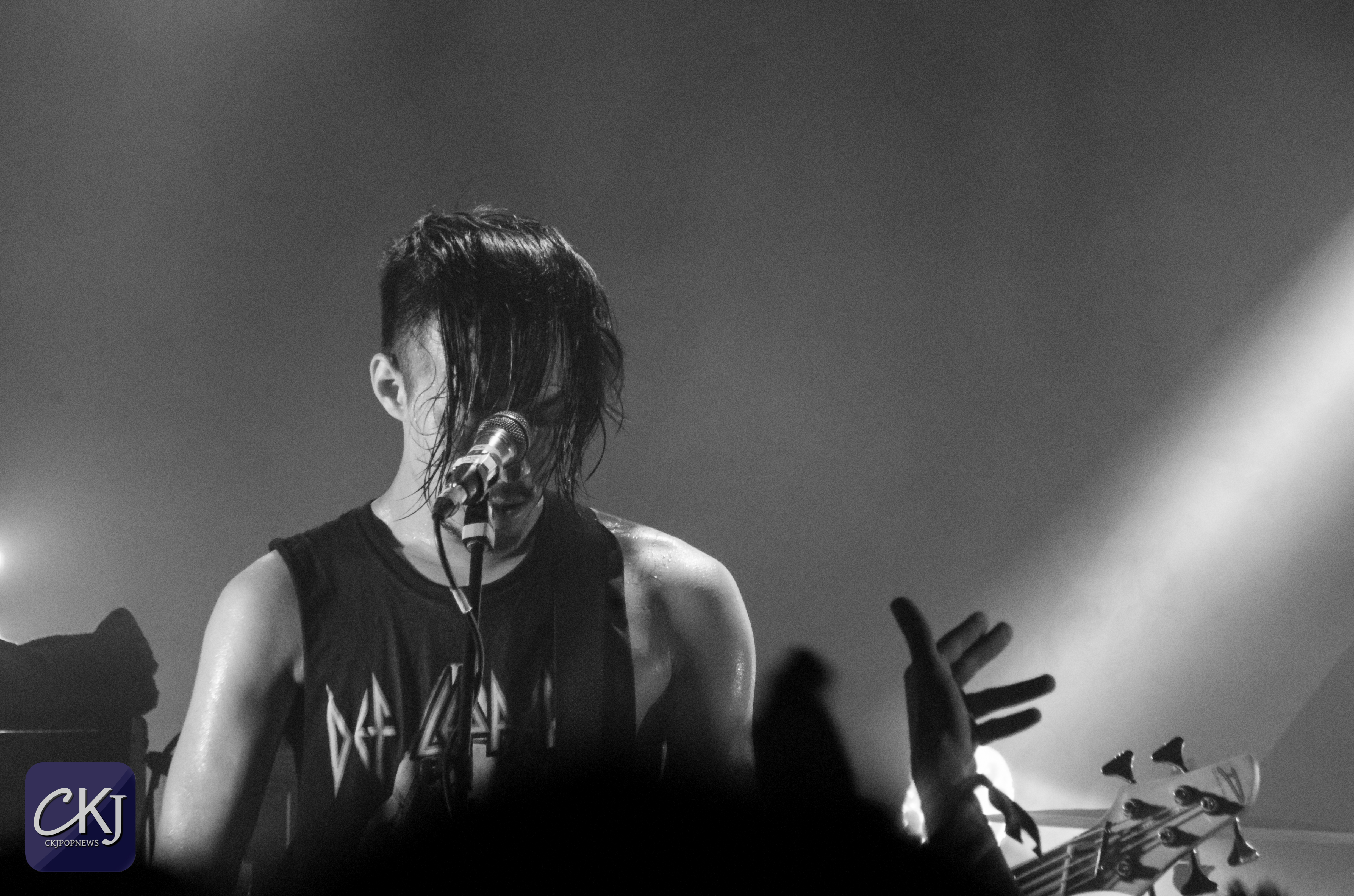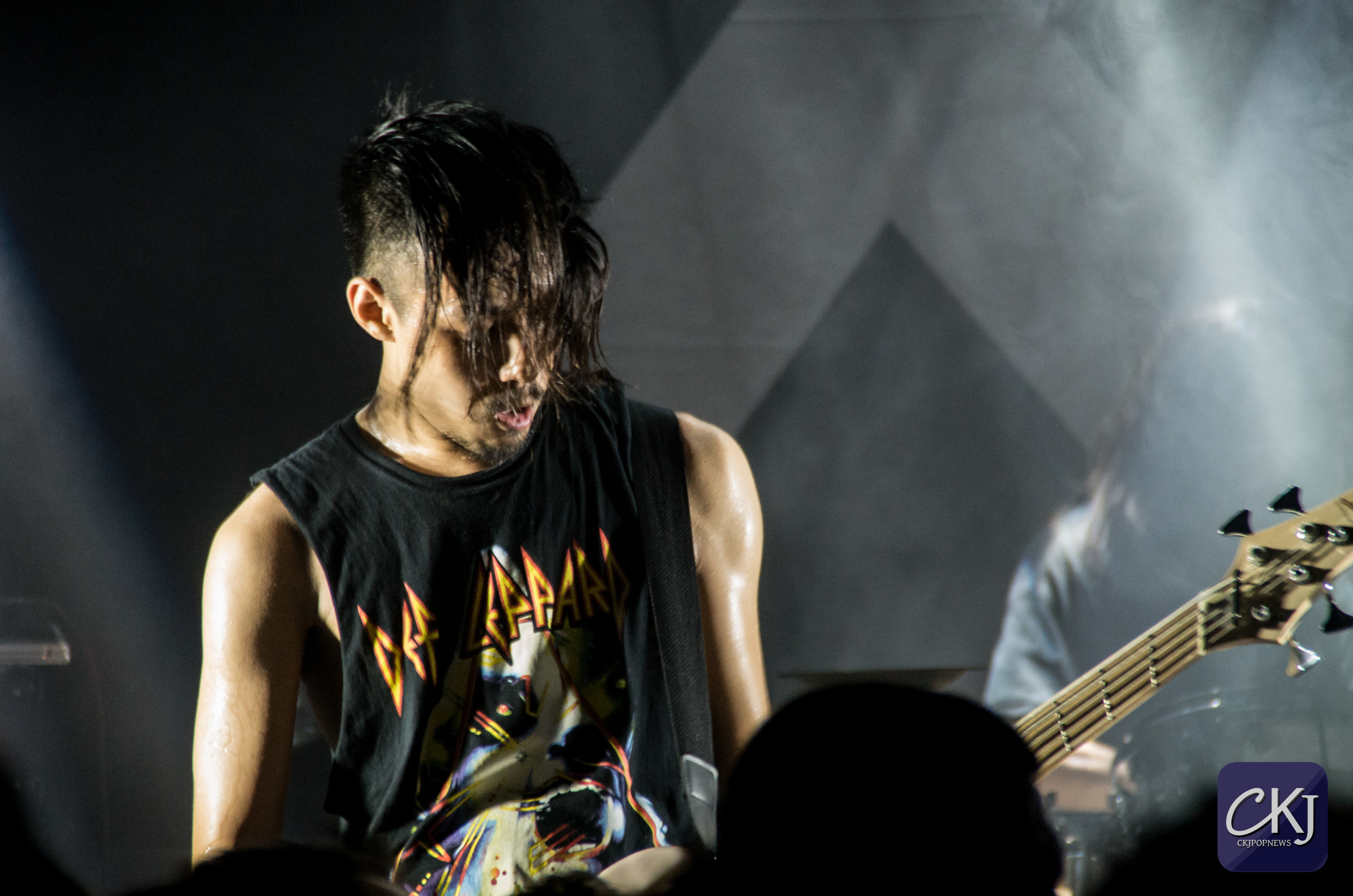Leur musique regroupe plusieurs styles distincts, et avec des rythmes différents, ce qui permet au groupe de pouvoir toujours proposer des performances complètes et dynamiques. Après quelques chansons entamées, comme “Mercury” ou encore “Six Feet Under“, Ryo a crié de sa voix la plus grave un “Merci beaucoup“, avant d’ajouter un petit “Je t’aime Paris“.