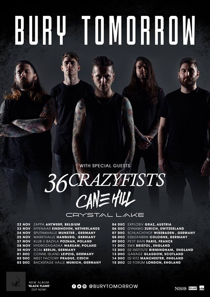 Alors que les CRYSTAL LAKE nous disaient en plaisantant lors de notre interview qu’ils sont toujours sur les routes pour aller jouer aux quatre coins du monde, le groupe a annoncé revenir en France le 9 décembre ! Après un concert au Petit Bain début juillet, le groupe de metalcore sera à nouveau dans cette même salle parisienne en décembre, mais cette fois-ci en soutien à la tête d’affiche Bury Tomorrow, et aux côtés des autres premières parties 36 Crazyfists et Cane Hill. Voici le poster promotionnel de cette nouvelle tournée :