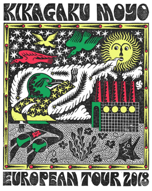 Un autre groupe japonais a annoncé sa venue en France, et cette fois-ci, la fête ne se fera pas qu’à Paris ! Les Kikagaku Moyo seront de passage en France au mois de novembre, à l’occasion de leur tournée européenne 2018, et ils ne donneront pas un mais trois concerts ici ! Ils seront à Paris le 9 novembre (Petit Bain), à Lyon le 28 novembre (Jack Jack) et le lendemain, 29 novembre, à Bordeaux (IBOAT). Voici l’affiche promotionnelle de cette tournée :