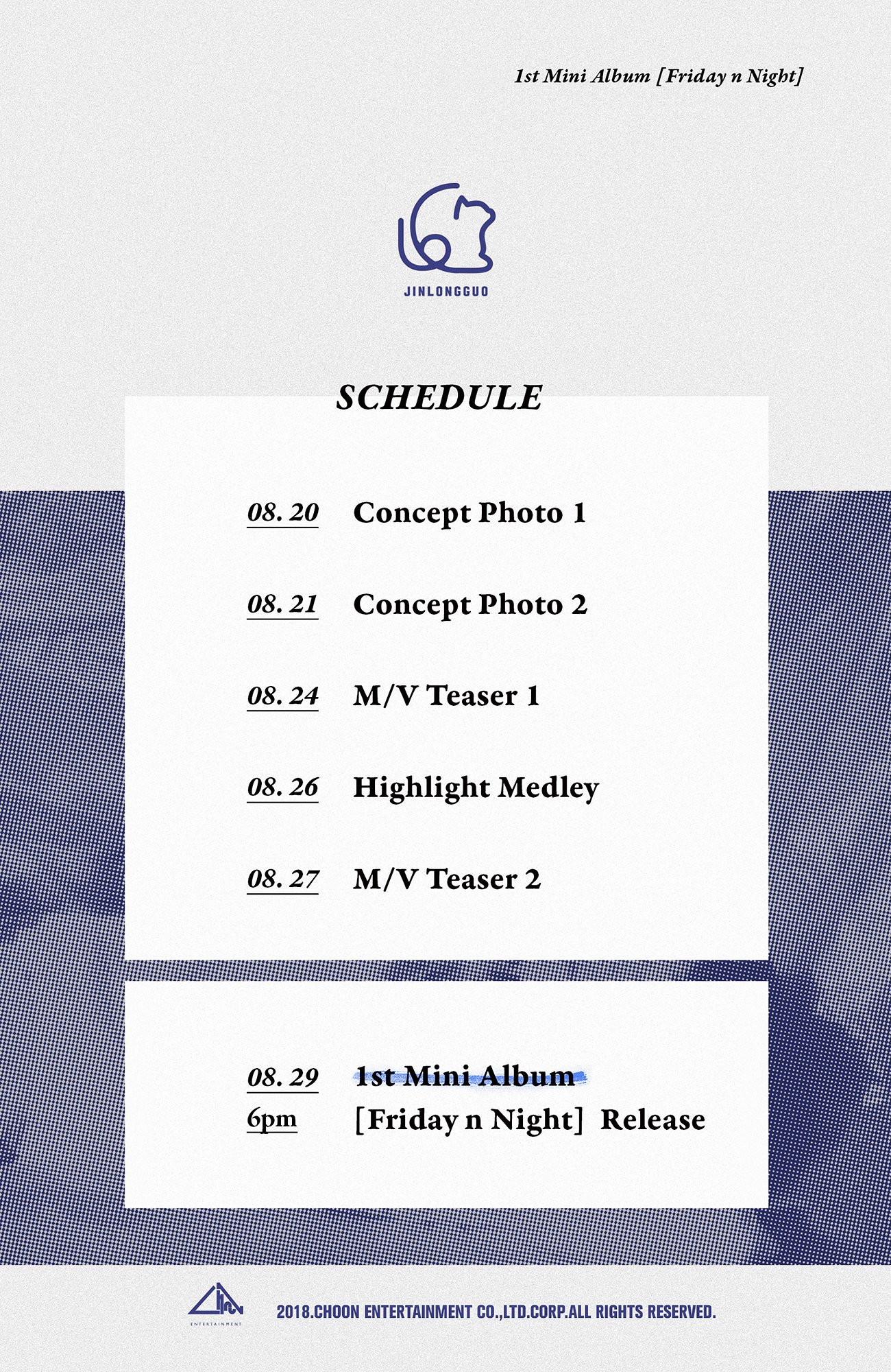 L’annonce initiale a été faite il y a quelques jours, et de nouvelles informations ont été dévoilées depuis. Le premier mini-album de l’artiste sortira officiellement le 29 août, et il s’intitule “Friday n Night“. En ce qui concerne la première photo concept de cet opus, vous pourrez la découvrir le 20 août. Voici le planning de pré-promotion de son comeback :