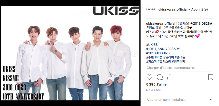 Mais les membres actuels de U-KISS ne sont pas les seuls à avoir célébré ces 10 ans de carrière ! Alexander et Kevin ont également commémoré cette date anniversaire sur leurs comptes Instagram ; même si les deux anciens membres n’ont pas fait 10 ans de carrière au sein de U-KISS, ils ont tout de même marqué l’histoire du groupe et ont apporté leur pierre à l’édifice.