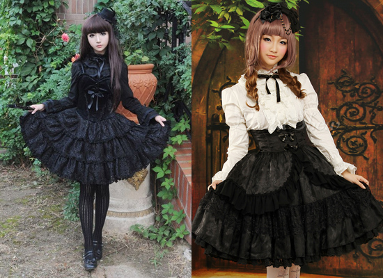 Les vêtements des Gothic Lolita sont plutôt noirs mais peuvent aussi avoir une pointe de blanc ou être dans des tons bordeaux ou violet. Leurs tenues n’ont pas toujours de motifs, mais quand c’est le cas, cela fait généralement encore écho au monde gothique, avec des têtes de mort ou des croix.