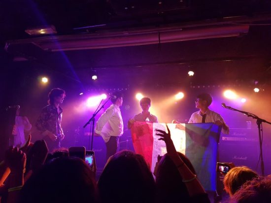 Quand les premières notes de “Seven Nation Army” des “White Stripes” ont été entendues, les encouragements n’ont fait qu’augmenter. Tout le monde s’est mis à chanter à l’unisson sur le thème de basse ultra-célèbre. Enfin, la dernière chanson, l’une des plus célèbres des Drug Restaurant, “Mistake” a été le coup de grâce de ce concert de rock. Les artistes, bien qu’épuisés, ont continué de jouer avec passion. L’occasion pour les fans d’applaudir les artistes une dernière fois. Une photo de groupe a ensuite été prise, avec un drapeau français donné par une fan [Mai] et signé par le groupe. Cette photo symbolise le beau souvenir de ce concert exceptionnel.