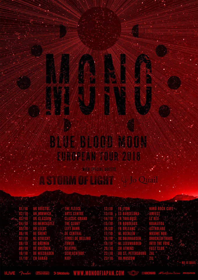 Si vous voulez vous procurer les billets, sachez qu’ils sont déjà en vente ! Notez également que les artistes A Storm of Light et Jo Quail seront présents sur toutes les dates de tournée, en première partie des MONO. Retrouvez ici toutes les informations relatives à chacune des nouvelles dates françaises de MONO :