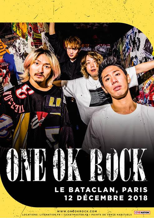 Composé de Taka (chanteur), Toru (guitariste), Tomoya (batteur), et Ryota (bassiste), ONE OK ROCK fait partie des groupes de Rock les plus connus au Japon. ONE OK ROCK revient cette année pour une tournée européenne dont un concert exceptionnel en France le 12 décembre prochain au Bataclan.
