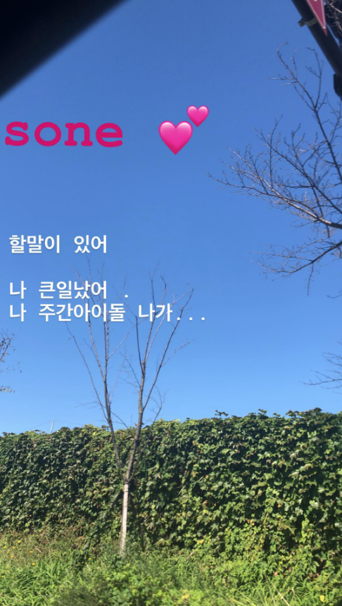 “J’ai quelque chose à partager. Quelque chose de grand est arrivé. Je vais sur ‘Weekly Idol’.”
