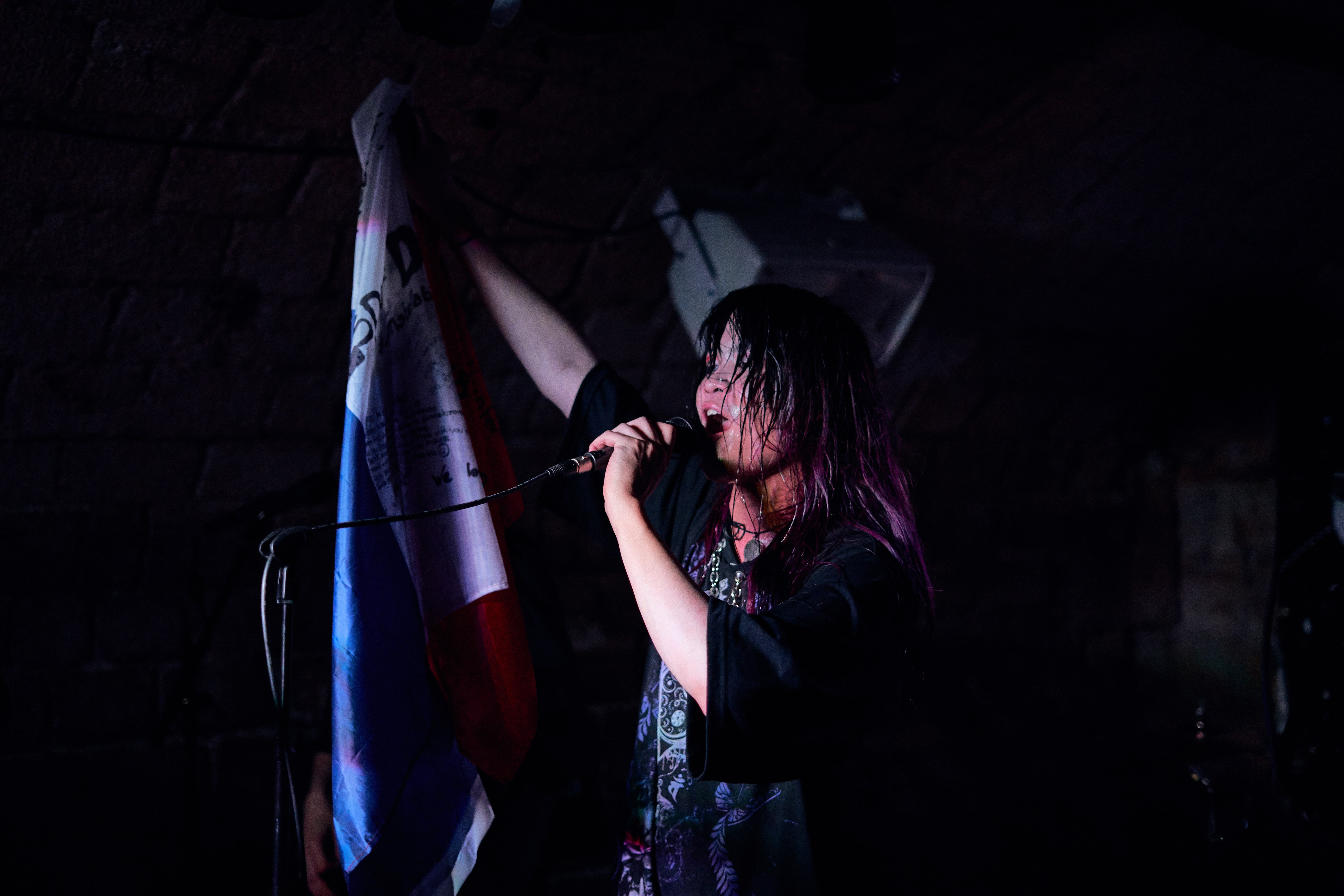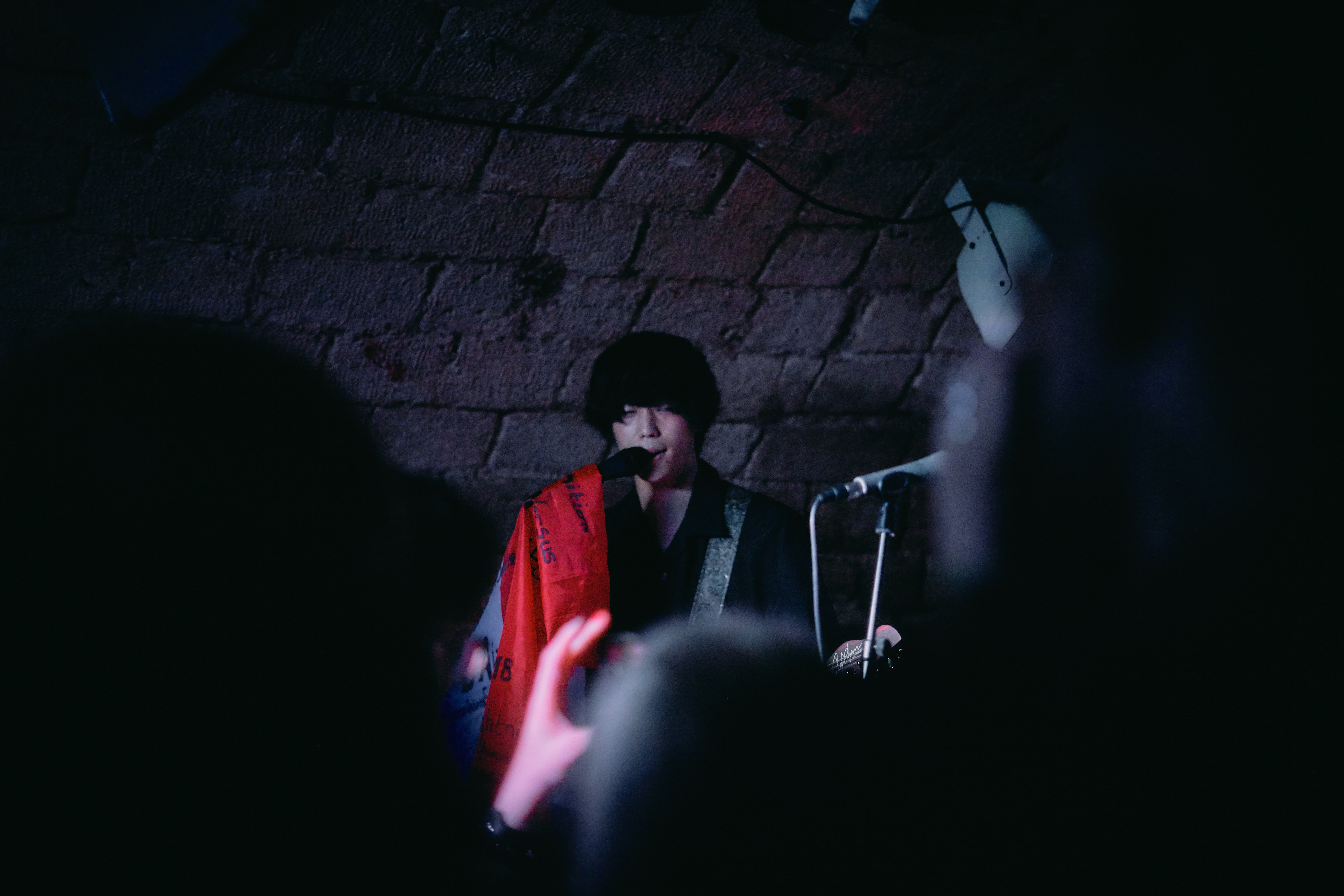Le chanteur principal, Kai, a achevé de pousser l’ambiance à son paroxysme en encourageant le public à frapper dans ses mains, avant de commencer à chanter en puissance, accompagné d’accords à la guitare électrique et à la basse. Ses mains ont enchainé les mouvements hypnotiques, et ils les a passé à répétition dans ses longs cheveux teintés de rose, comme s’il était en transe. Vers le milieu de la chanson, avec un sourire radieux, il s’est écrié “Ça va ?“, et le public a répondu en un seul hurlement réjoui. Les bras levés et les index dressés, il n’a eu de cesse d’encourager le public à l’imiter et à montrer son enthousiasme.