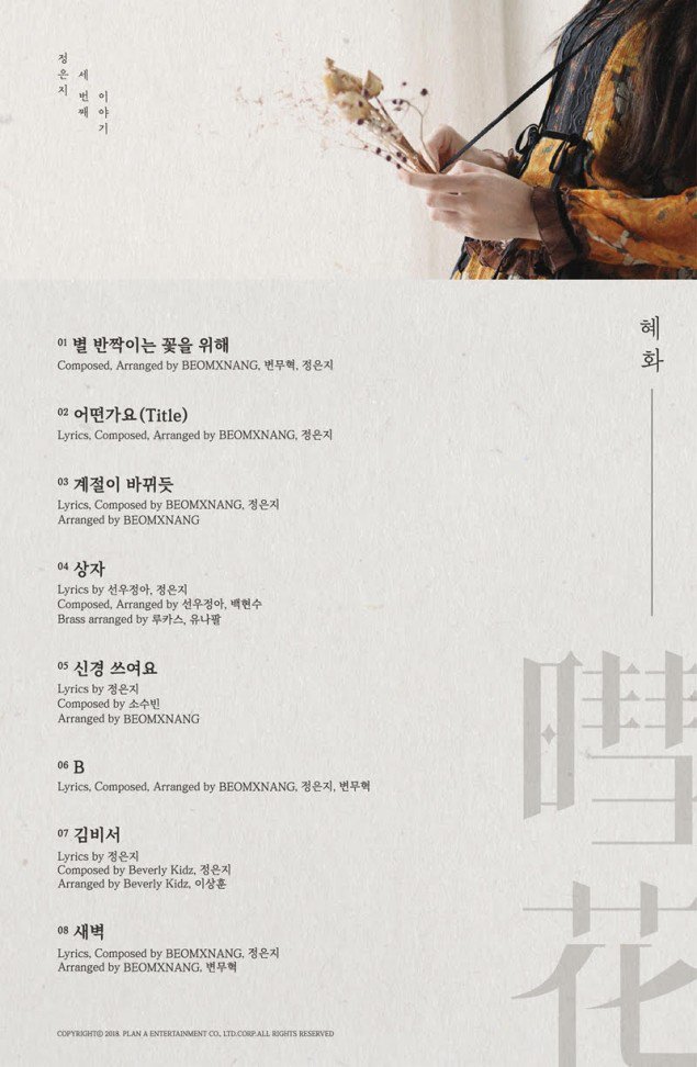 Ce premier album contiendra un total de huit chansons, dont sept sur lesquelles EunJi a travaillé à la composition et l’écriture des paroles. Il s’intitulera “Hyehwa” qui en chinois rassemble les caractères pour “briller comme une étoile” et “fleur”.