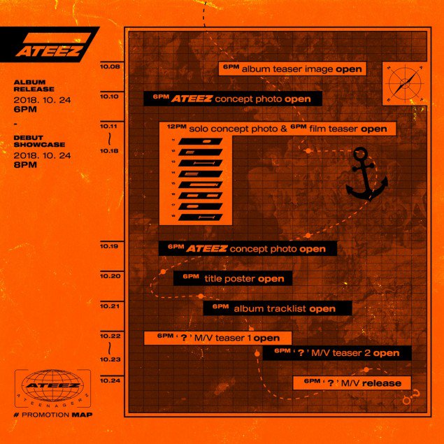 Les ATEEZ se préparent progressivement pour leur début. Les garçons ont récemment ouvert une chaîne Youtube officielle après avoir attiré l’attention dans leur série réalité intitulée ‘Code Name is ATEEZ”. Ils ont aussi dévoilé le planning de leurs teasers et les fans pourront alors appréhender les différents teasers, photos concepts, la liste des morceaux, les teasers des clips et davantage jusqu’à leur début officiel le 24 octobre à 18 heures (Corée). Le même jour, les ATEEZ viendront à la rencontre de leurs fans par le biais d’un show-case.