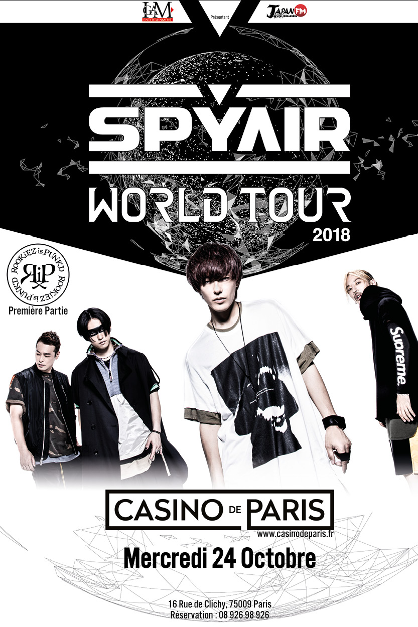 Vous noterez qu’à l’occasion de cette tournée, le groupe sera accompagné par un autre groupe japonais qui s’occupera de mettre l’ambiance en première partie des concerts : ROOKIEZ is PUNK’D ! Formé en 2006, soit un an plus tard que SPYAIR, ce groupe est aussi fidèle à la musique rock. Tout comme SPYAIR ils sont connus pour leurs interprétations de génériques d’anime tels que “Bleach”, “Durarara !!”, “Blue Exorcist”, ou encore “Yowamushi Pedal”.