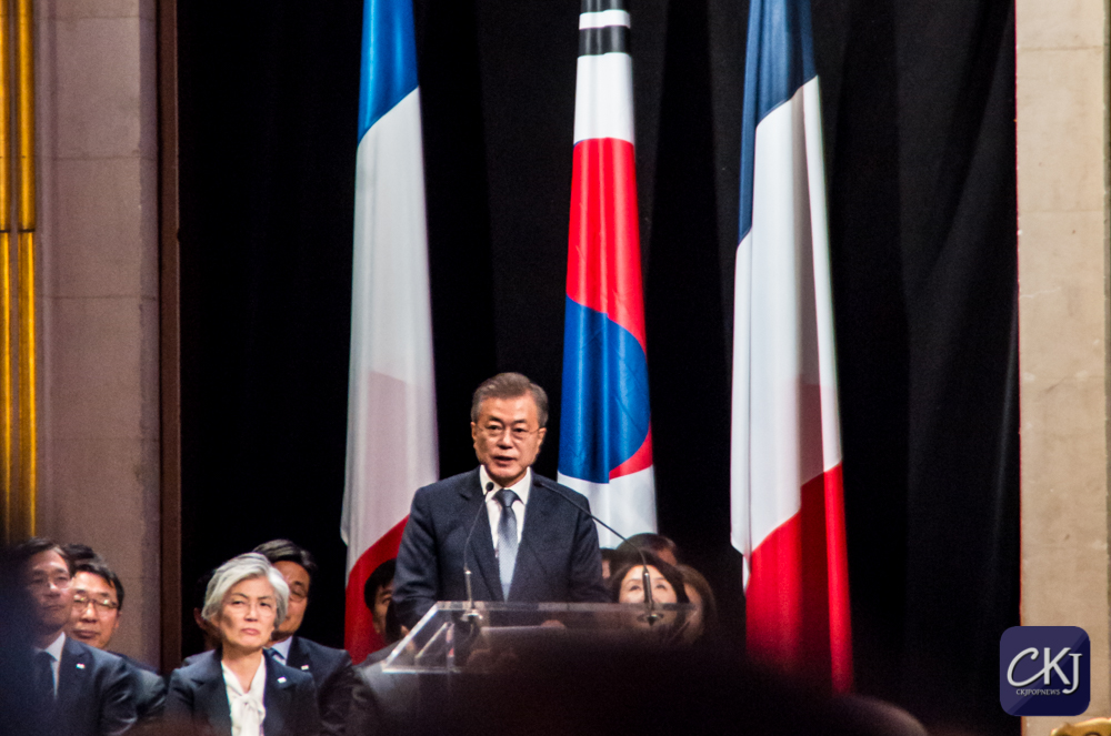 Anne Hidalgo a ensuite laissé place au président sud-coréen Moon Jae-in, qui s’est adressé aux invités de cet évènement dans un discours emprunt d’admiration pour Paris et la France. Son discours complet est à lire ici :