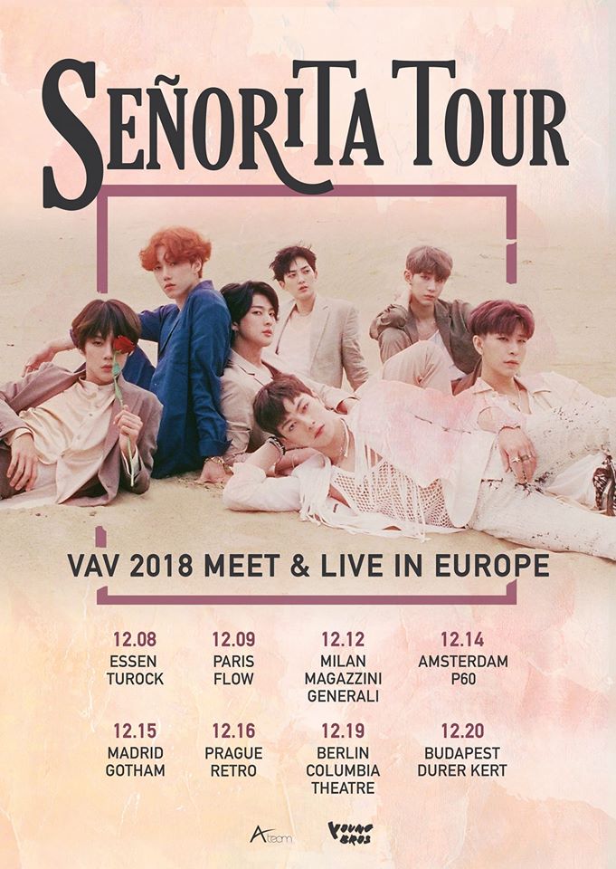 La vague de concerts continue de prendre d’assaut l’Europe, et c’est cette fois le groupe VAV qui va débarquer pour une toute première tournée européenne ! Les garçons de chez A Team seront en France, en concert unique à Paris, le 9 décembre prochain à l’occasion de la tournée “Señorita Tour“, une tournée qui porte donc le nom de leur tout dernier comeback.