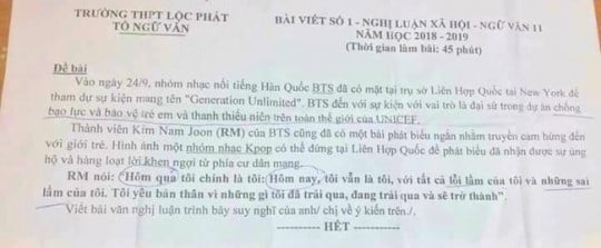 Parmi ces mots, le discours historique ( “trouvez votre nom et trouvez votre voix en vous exprimant”) fait par RM à l’occasion de la 73 ème assemblée générale de l’Organisation des Nations-Unis pour la jeunesse pour le lancement de la campagne UNICEF “génération inépuisable”, a trouvé sa place dans les tests et programmes scolaires en Corée, aux Etats-Unis, à Singapour et au Vietnam.