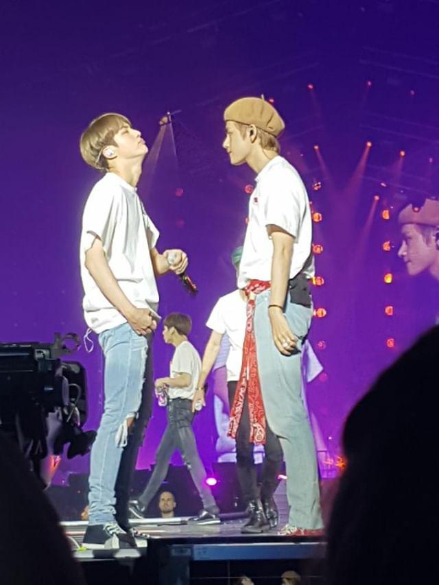 Lorsque V a pris le micro, il a été acclamé avec hystérie et les gradins de la salle ont vibré, surprenant les membres à chaque fois :