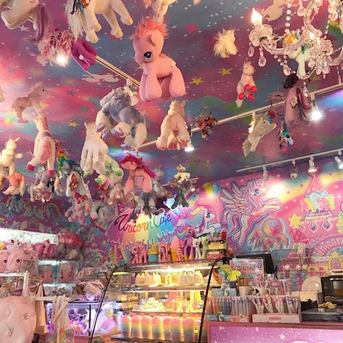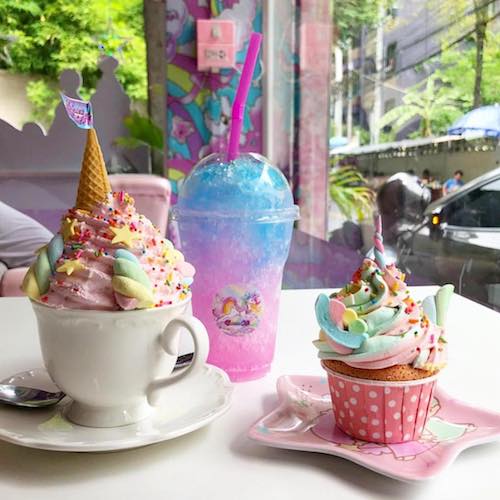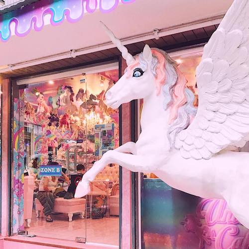 Vous aimez les licornes et les couleurs à volonté ? Alors ce café thaïlandais (très) haut en couleur est fait pour vous ! Le Unicorn Cafe a été créé en 2012. Les propriétaires ont d’abord commencé par vendre des produits faits main, en lien avec les licornes, sur des plateformes comme Facebook ou Instagram. Ils ont finalement décidé d’ouvrir leur boutique en 2013. Leur souhait était que les visiteurs puissent venir voir et choisir les accessoires fabriqués directement en boutique, mais aussi qu’ils aient la possibilité de prendre des photos à l’intérieur du magasin, richement décoré d’un papier peint licorne spécialement dessiné pour l’enseigne.