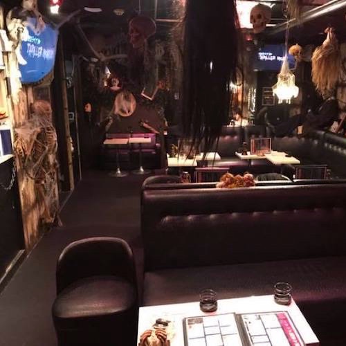 Les poupées, les squelettes ainsi que les crânes accrochés au mur vous glaceront le sang, mais l’endroit est très agréable et les serveurs feront en sorte que vous vous sentiez comme chez vous, avec vos amis, pendant une soirée d’Halloween. Le bar propose aussi des formules à 3 980¥ (30€) qui comprennent une histoire en direct de 15 minutes et une heure de boisson à volonté, bien connue des izakaya. Vous pouvez aussi choisir une extension d’une heure pour 2 980¥ (environ 22€) de plus.