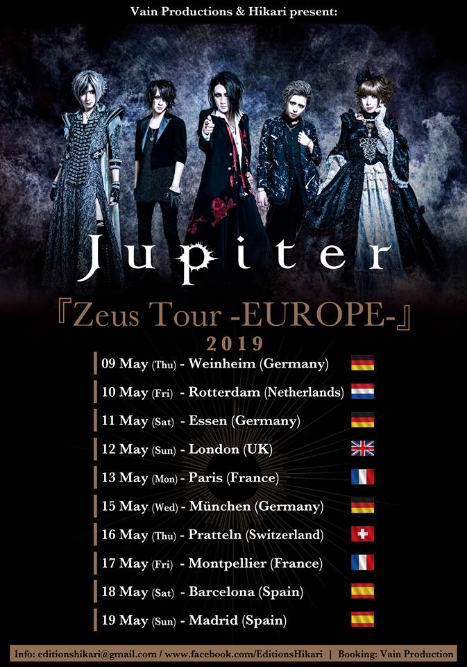 Jupiter iront rendre visite à leurs fans parisiens le lundi 13 mai, et après quelques dates, se dirigeront vers Montpellier pour cette seconde date française qui aura lieu le vendredi 17 mai. Voici le poster promotionnel officiel de la tournée :