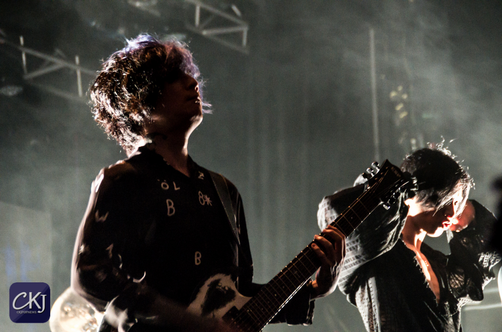 Les cinq artistes ont semblé donner leur maximum, la tête de Toshiya bougeant en tous sens, ses cheveux tourbillonnant alors qu’il semblait s’acharner sur sa basse en se figeant de temps à autre en une pose toujours plus théâtrale. Ce dernier a fini par gagner le centre de la scène aux côtés de Kyô pour saluer son public d’un bras levé et de ses poings brandis. Le guitariste Kaoru l’a rejoint, profitant que l’attention soit sur lui pour livrer une performance spectaculaire à la guitare électrique.