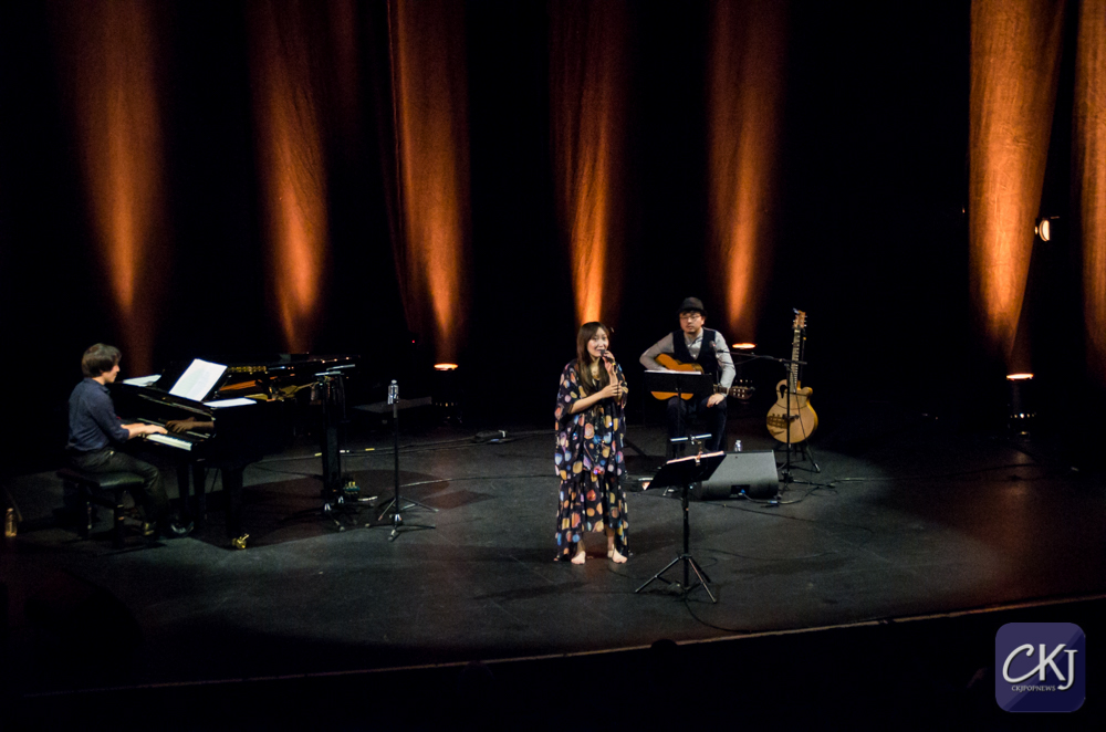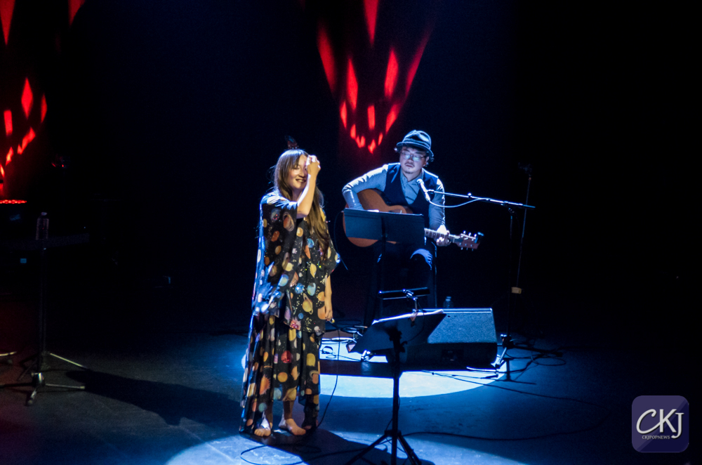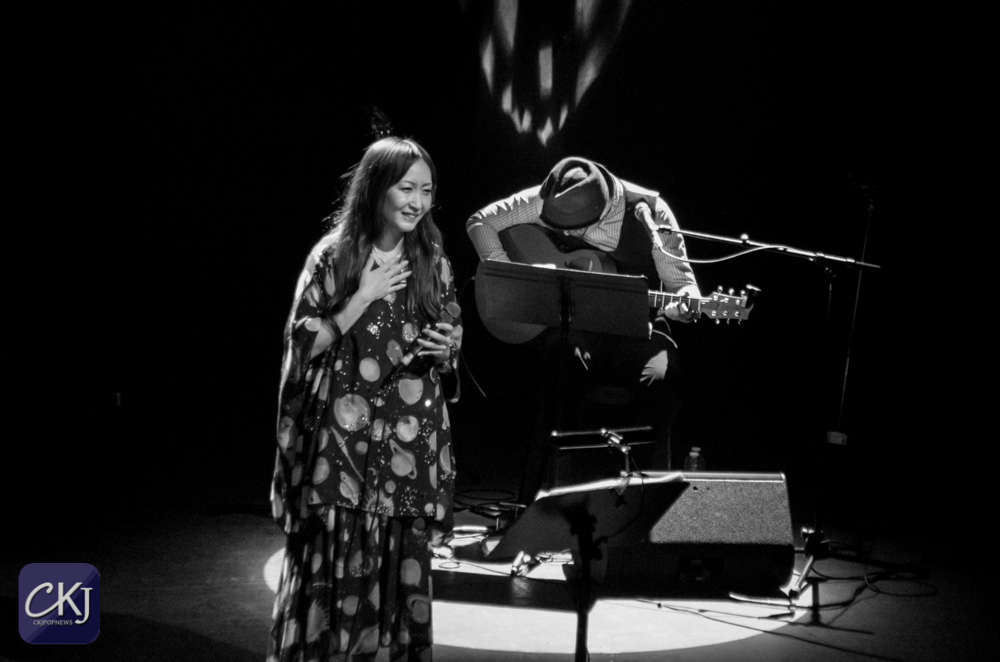 La première chanson, intitulée “Family Tree“, tirée de l’album “I found You“, a immédiatement montré l’harmonie entre les trois musiciens. Pour ce morceau, KOKIA s’apparentait à un oiseau. Ceux qui l’ont découvert pour la première fois en live ce soir-là ont été, sans l’ombre d’un doute, impressionnés par sa maîtrise vocale. Dès lors, KOKIA a adopté sa propre gestuelle, sensuelle et sensible, qui n’a pas cessé d’accompagner sa voix tout au long de la performance. Tout son corps se mouvait au son des accords de guitare et de piano.