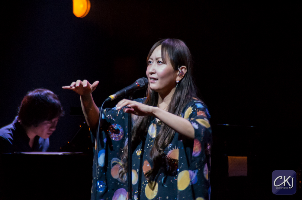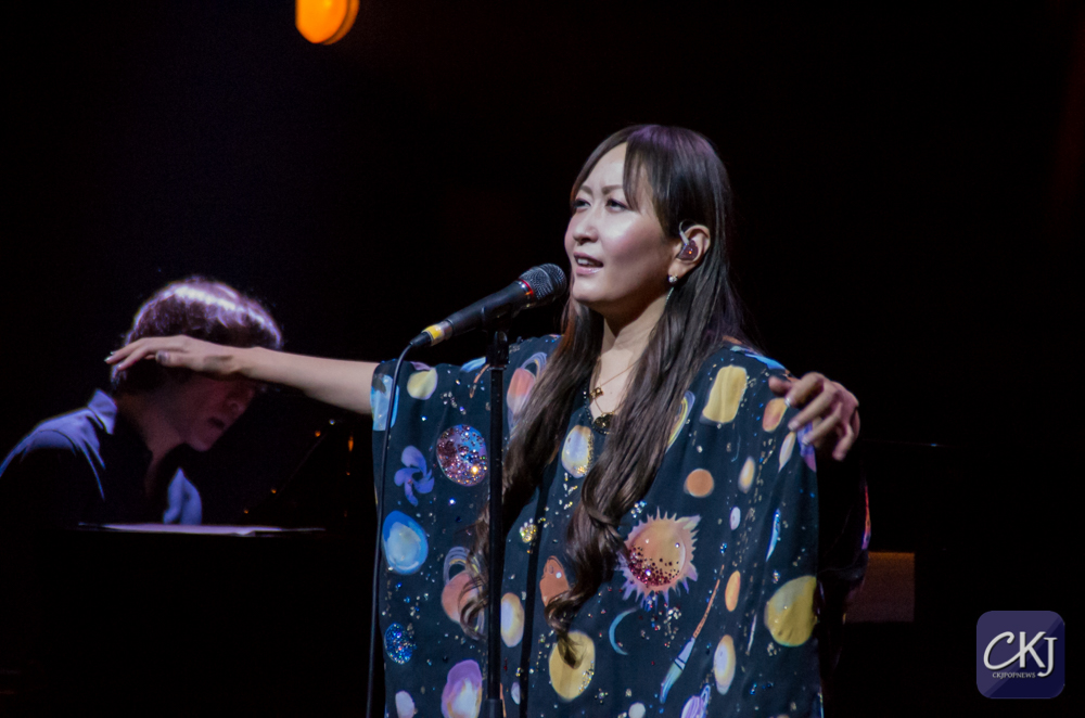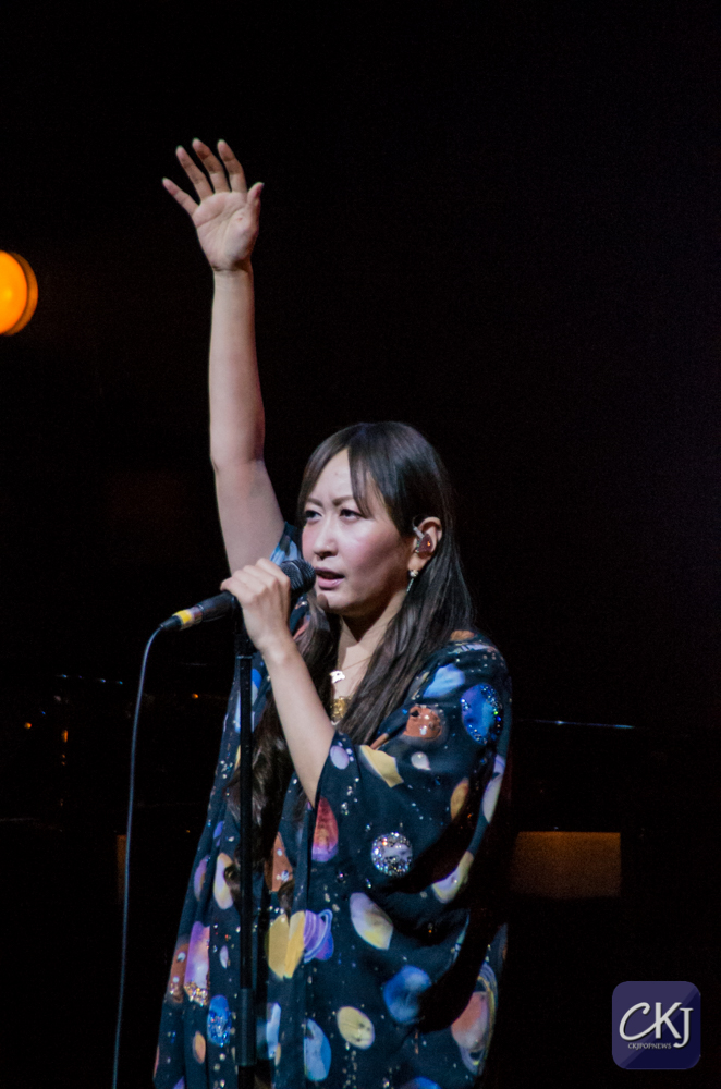 “Faraway“, chanson tirée de l’album “Hikari wo Atsumete“, a été un moment de légèreté et de flottement. Simplement accompagnée du piano, KOKIA s’est avérée être une artiste extrêmement sensible qui dessine les images à l’aide de ses mains.