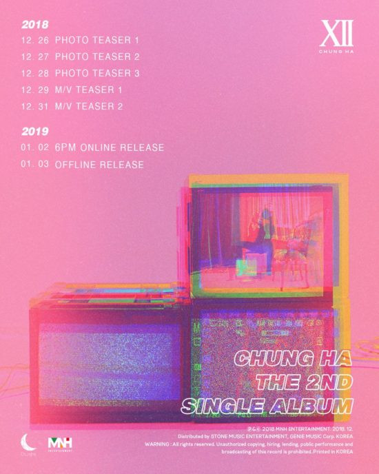 Ce 25 décembre à minuit en Corée, Chungha a dévoilé un emploi du temps pour les teasers qui arriveront très prochainement à l’occasion de la sortie de son deuxième single.