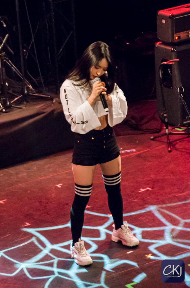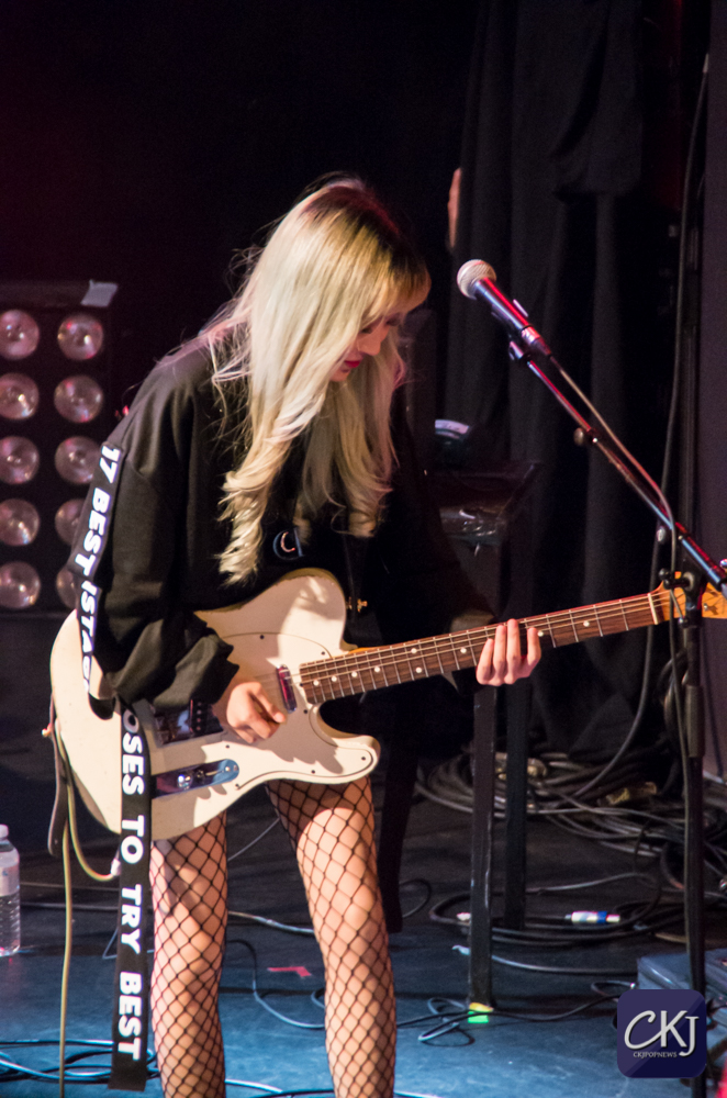 Sur des sonorités légèrement plus pop grâce au morceau “Peter Pan“, les filles ont ravi les fans présents et ont prouvé qu’elles avaient un style qui leur était propre, et qu’un groupe féminin peut cartonner sur scène aussi brillamment qu’un groupe masculin. Même chose pour la chanson “Thank You“, titre acoustique beaucoup plus plus ancré dans l’émotion. Cette fois-ci, c’est une facette plus douce et mélancolique que les filles ont choisi de montrer au public de l’Alhambra, qu’on ne leur avait pas encore vu à ce moment-là de la soirée.