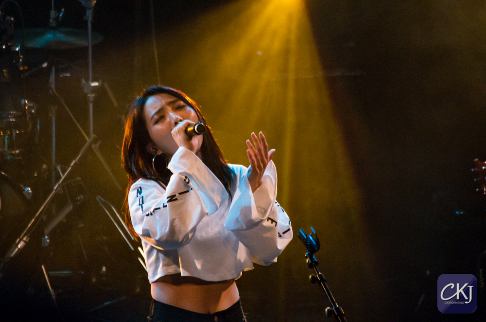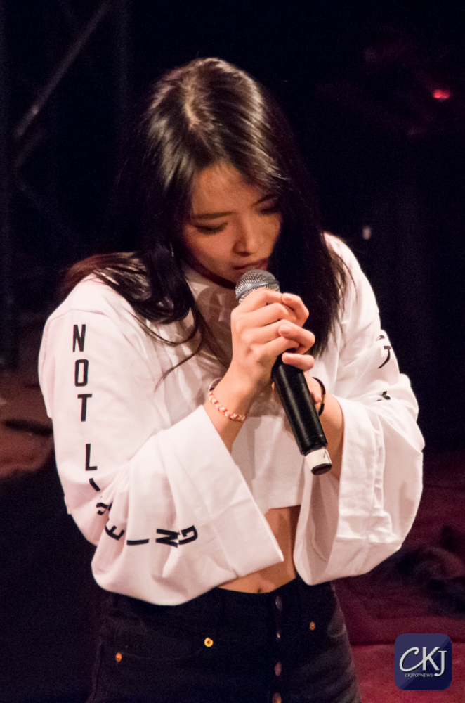 “Moonlight” a par la suite envoûté le public, et Gaeun a été tout particulièrement incroyable. C’est dire à quel point elle est complètement différente sur scène, lorsqu’elle est immergée dans son élément. Yuna a repris le micro pour déclarer :