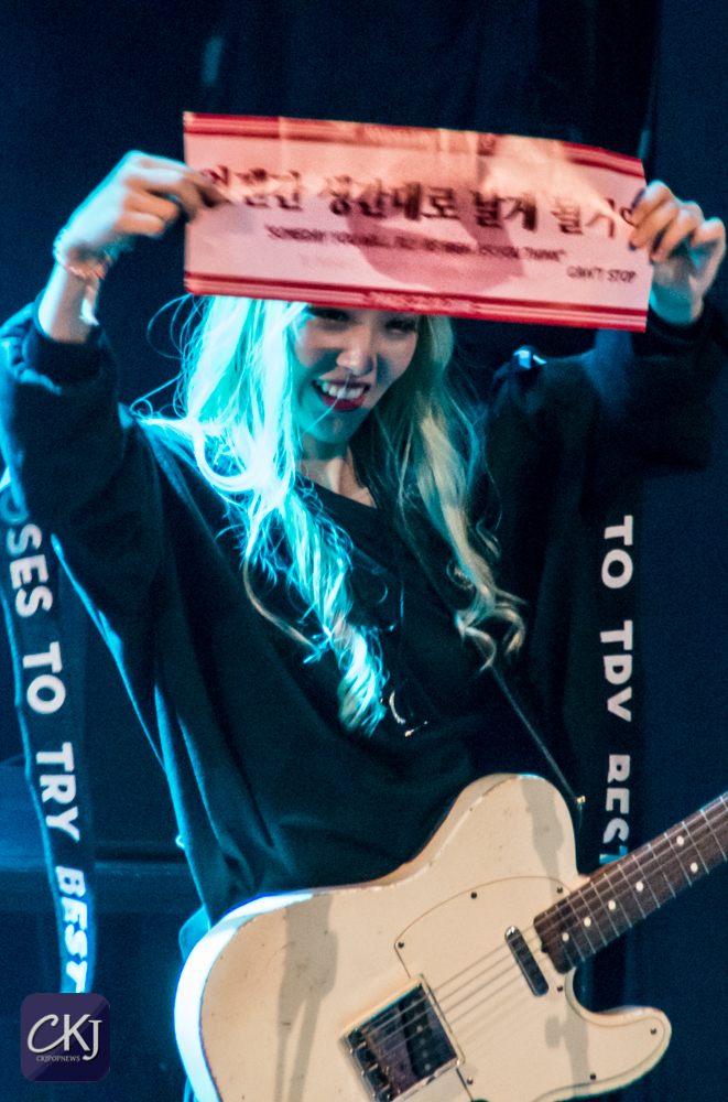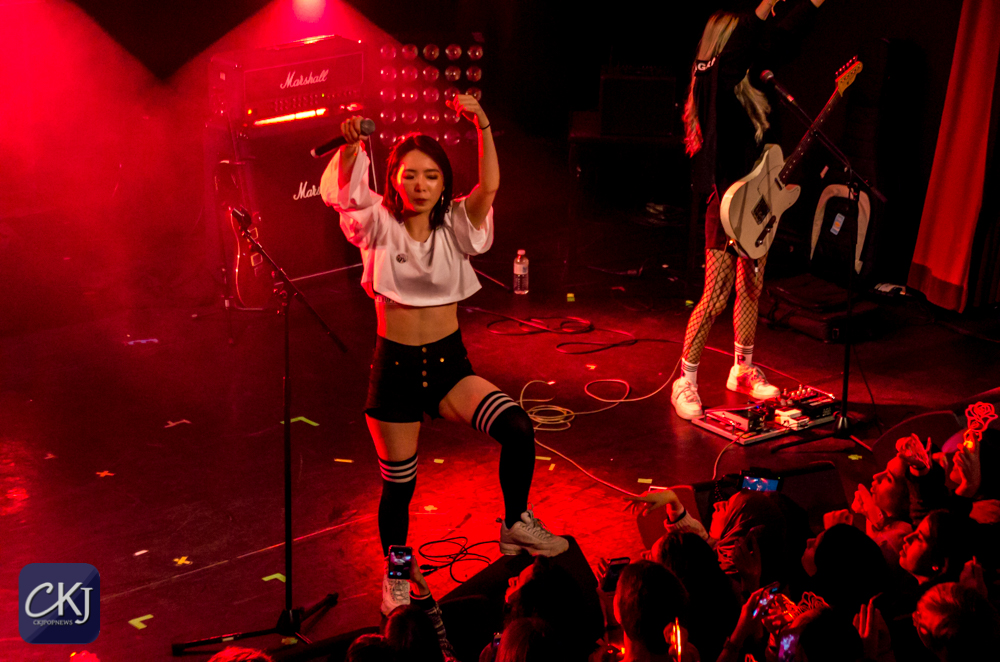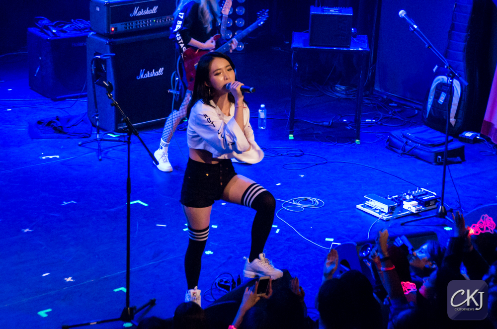 Dès lors, la première partie du concert a commencé avec l’arrivée des MARMELLO, ce groupe indépendant féminin composée de Hyuna au chant, Yuna à la guitare, Doeun à la basse et Gaeun à la batterie.