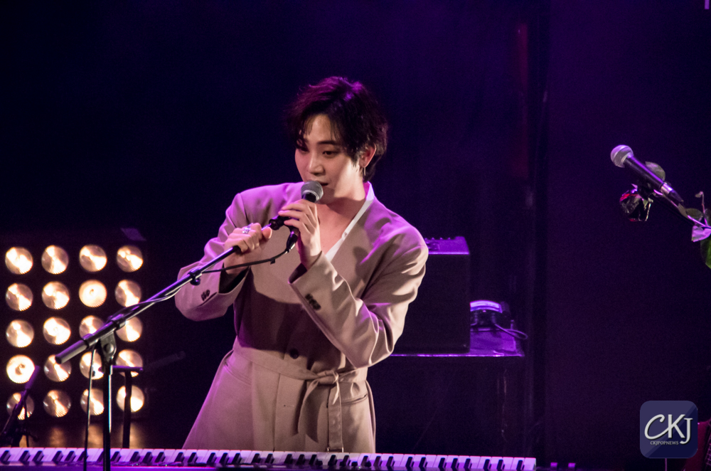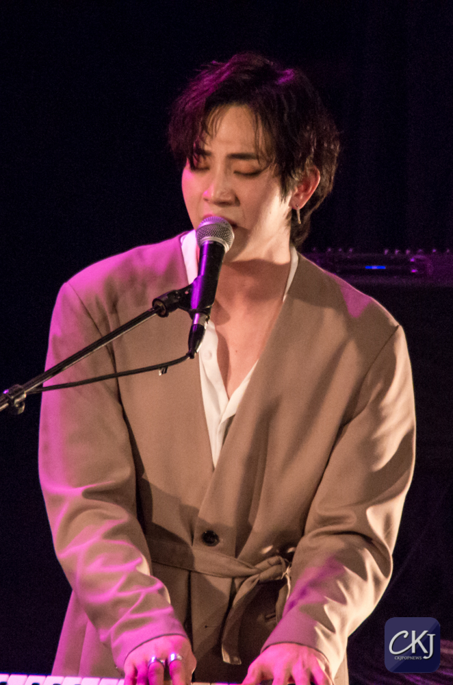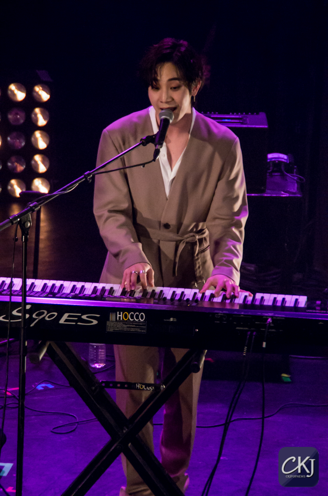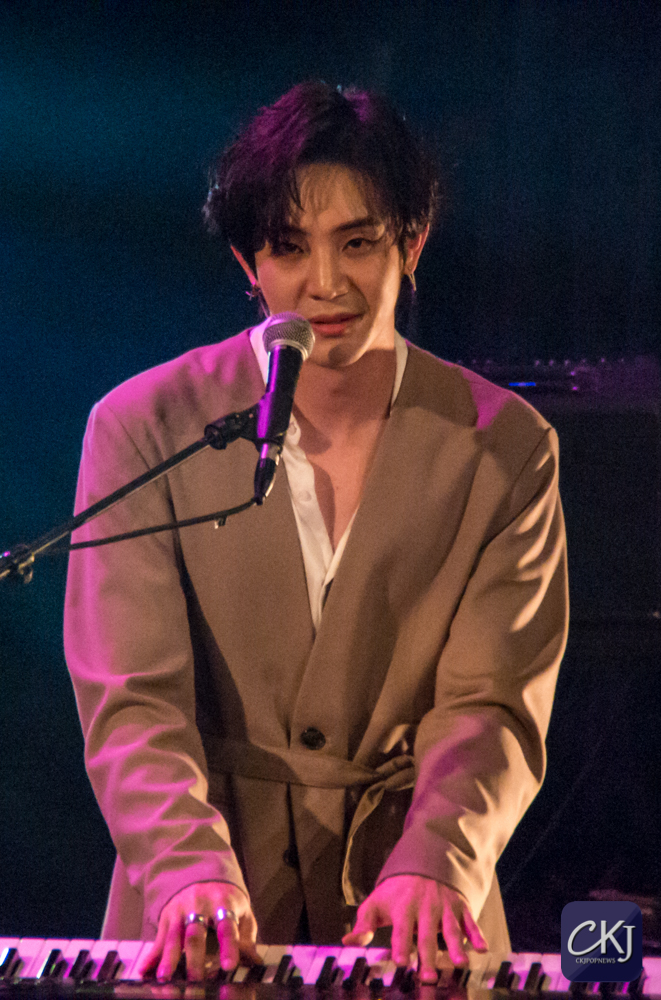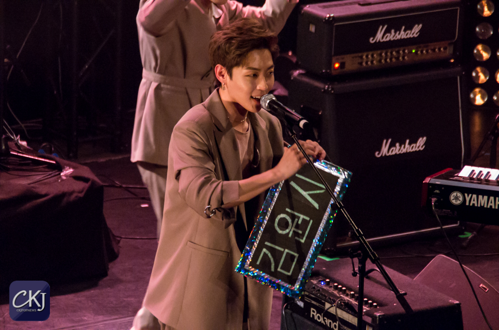 Dojoon a ensuite taquiné les fans, comme il a l’habitude de le faire, après avoir joué les premières notes au clavier de “Take Me Now“, et s’est alors improvisé chef d’orchestre, ce à quoi les fans ont répondu avec beaucoup d’entrain et d’énergie en chantant comme une chorale géante de plusieurs centaines de personnes.