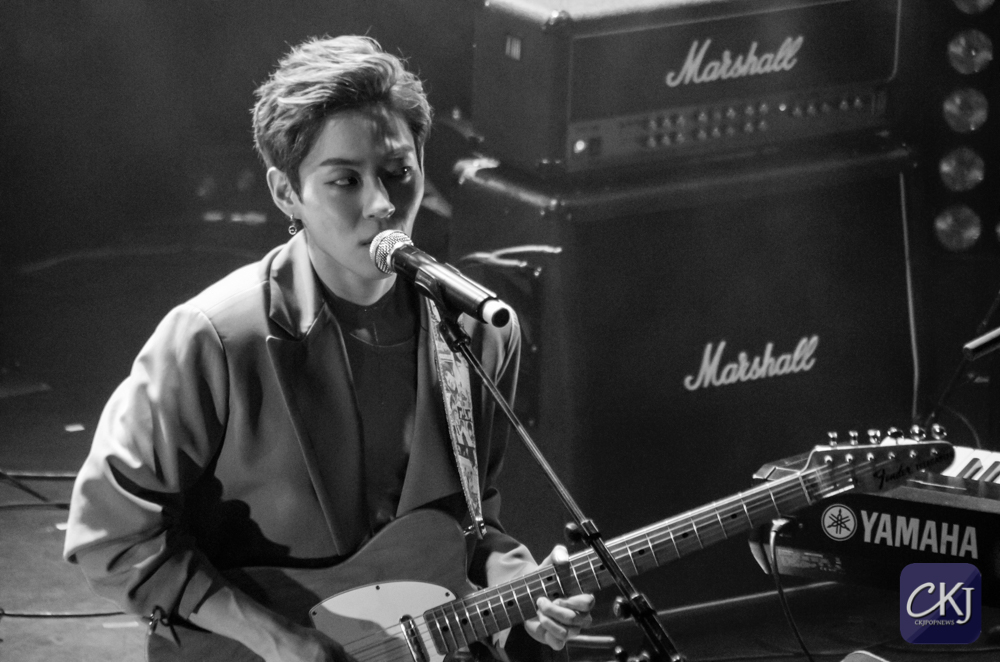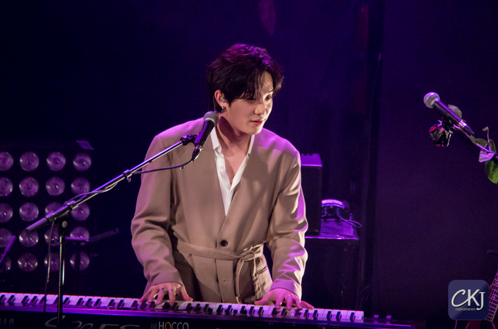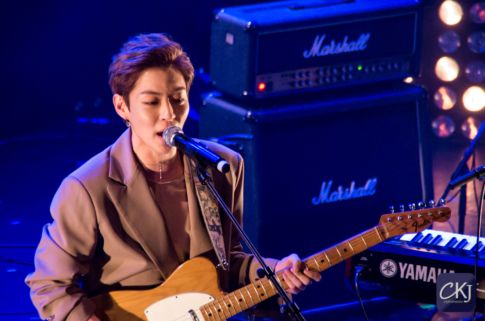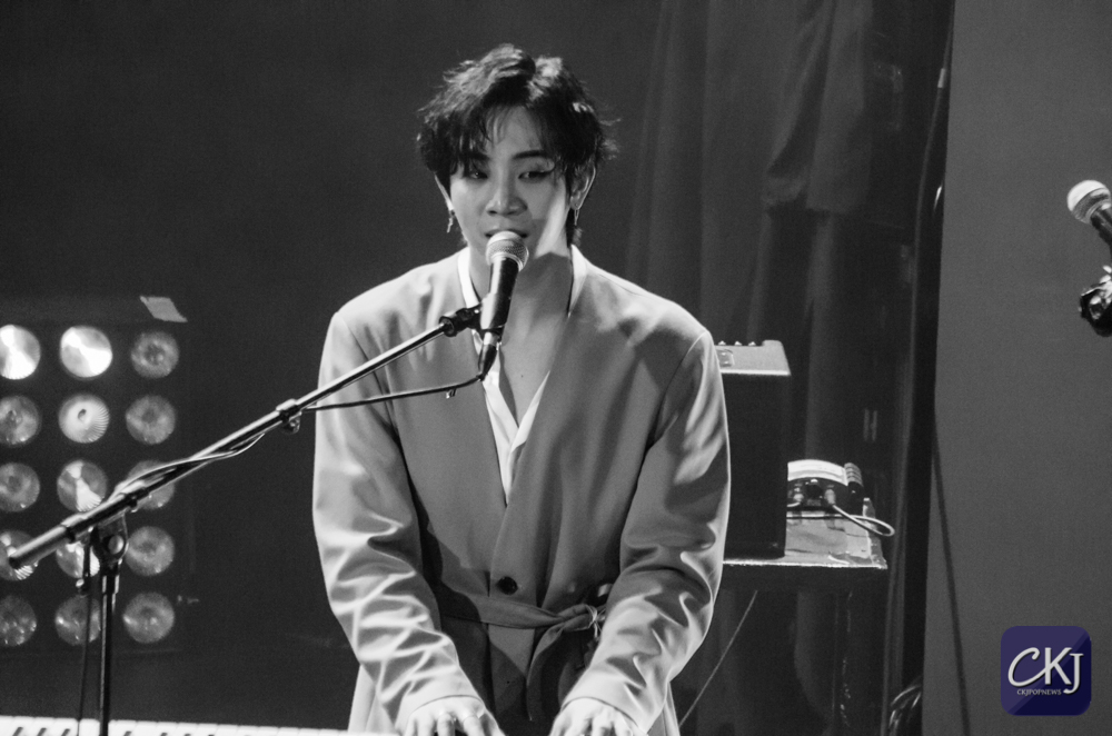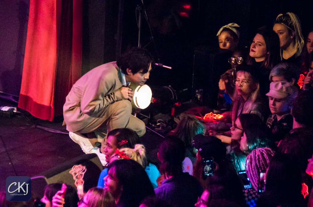 Dojoon a ensuite taquiné les fans, comme il a l’habitude de le faire, après avoir joué les premières notes au clavier de “Take Me Now“, et s’est alors improvisé chef d’orchestre, ce à quoi les fans ont répondu avec beaucoup d’entrain et d’énergie en chantant comme une chorale géante de plusieurs centaines de personnes.