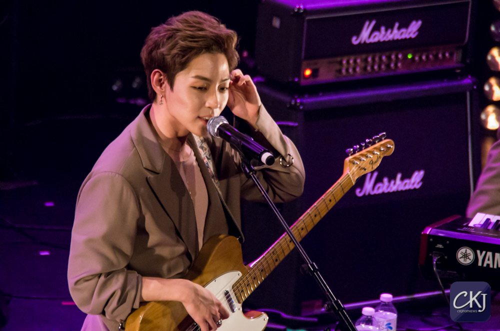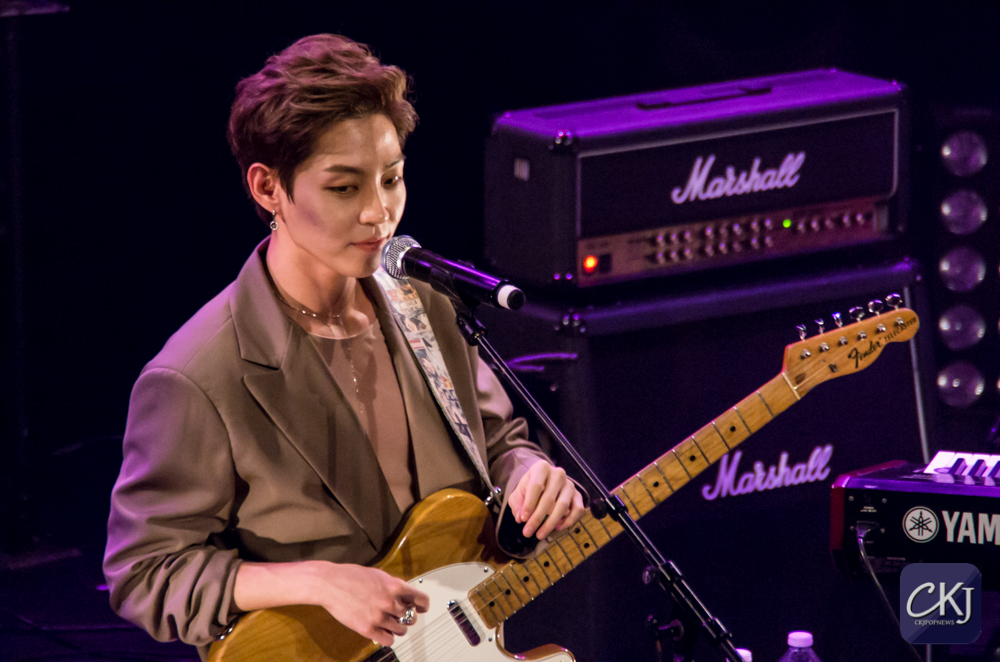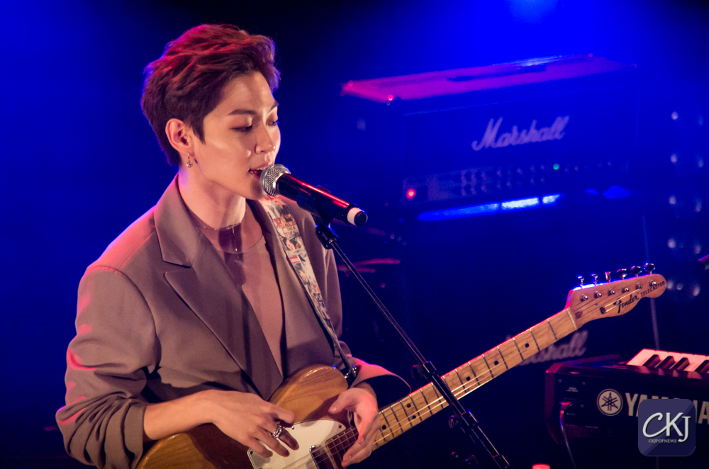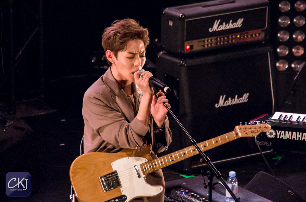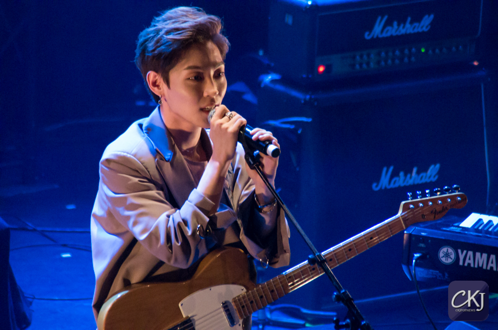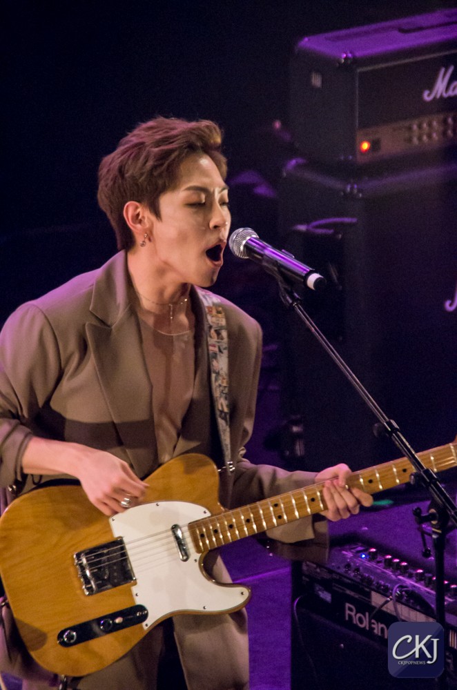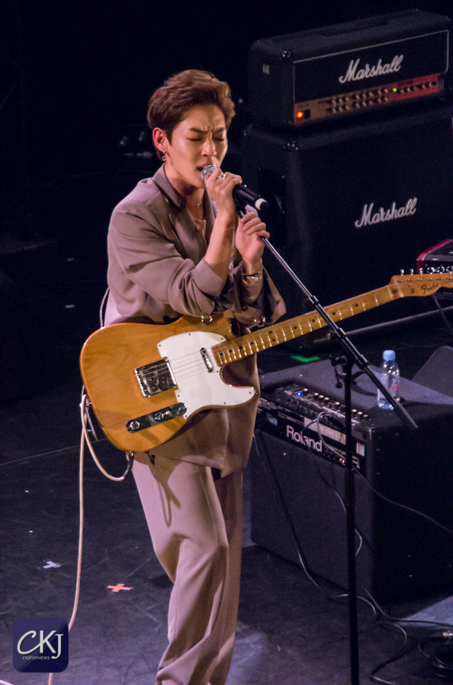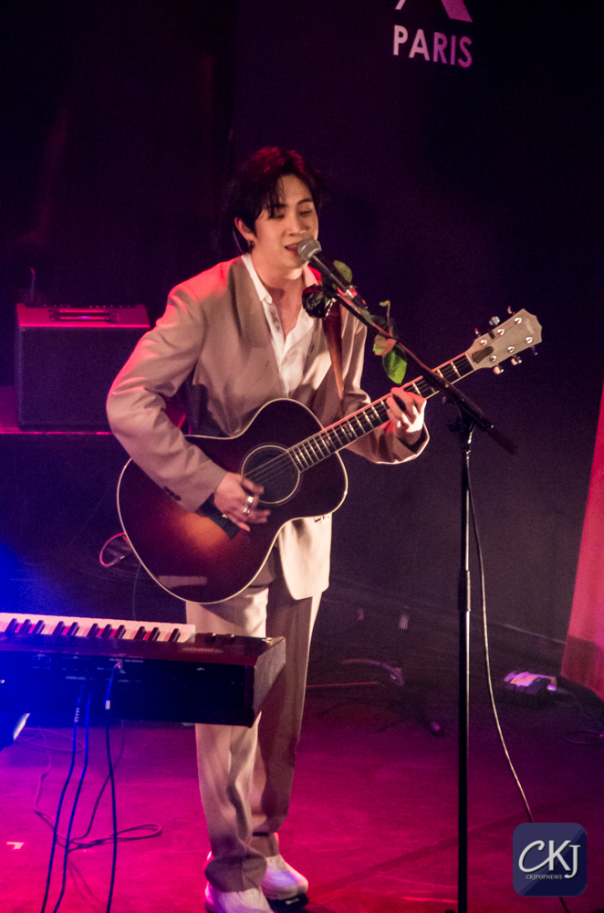 La première chanson “California“, totalement en anglais, a dévoilé la voix particulière de Woosung et l’harmonie entre les artistes. La salle s’est progressivement chauffée sur ce refrain entraînant.