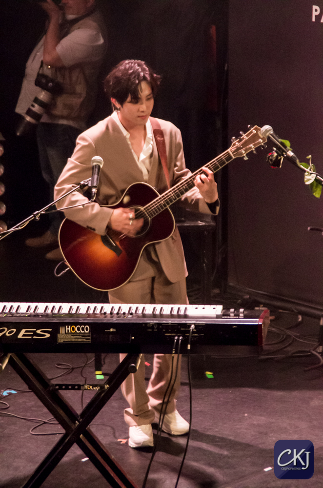 Au son de la guitare acoustique, The Rose ont ensuite opté pour une reprise de The Script intitulée “Breakeven” entièrement en anglais également. La performance a commencé près du batteur et les membres ont ensuite repris leur place pour délivrer une performance tout à fait exquise, sur cette chanson pop-folk. The Rose ont vraiment témoigné de leur talent en tant que musiciens, et de la cohésion entre leurs voix, un talent qu’ils ont forgé pendant des années dans la rue, en tant qu’artistes du busking. Les fans ont bien évidemment salué cette performance mélo-romantique et ce vibrato délicieux de Woosung. Hajoon, le batteur, a fait preuve d’une énergie incroyable de son côté.