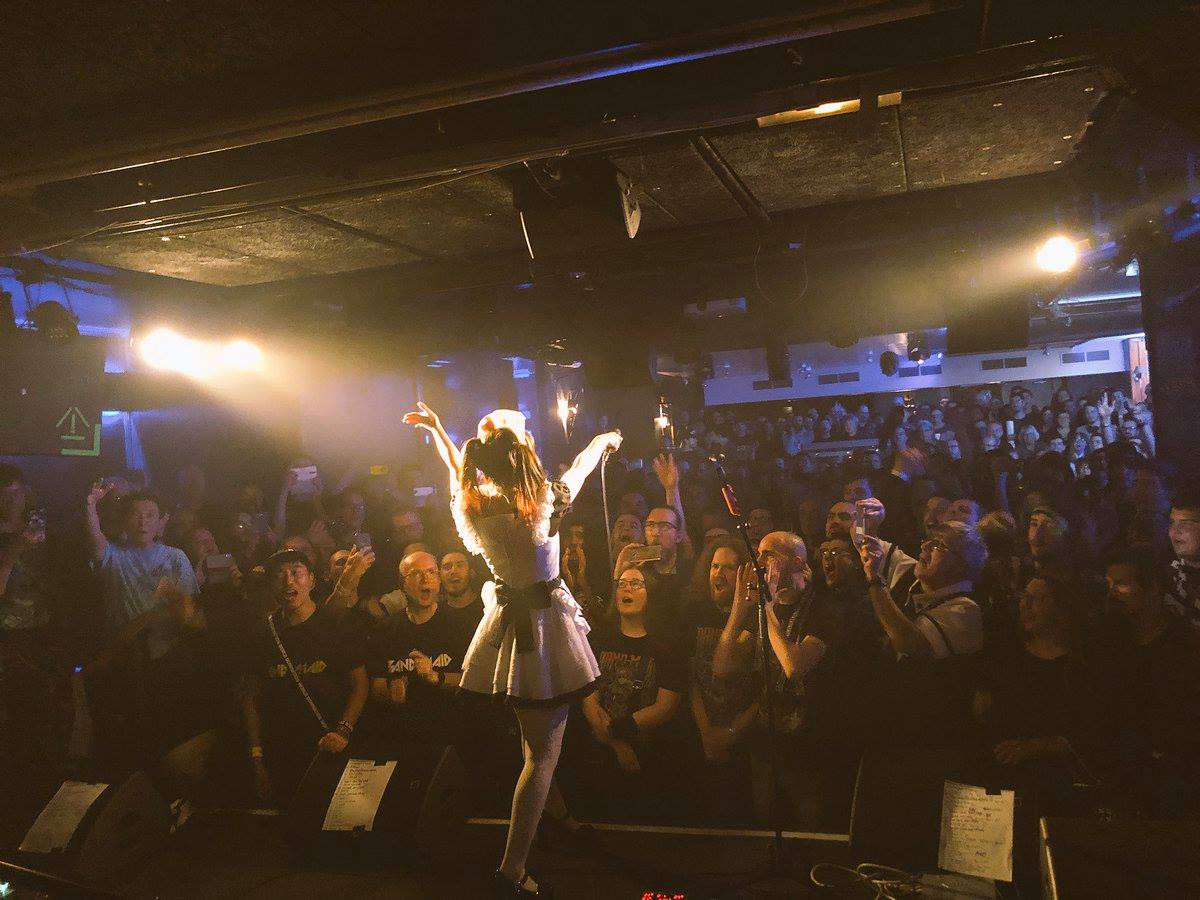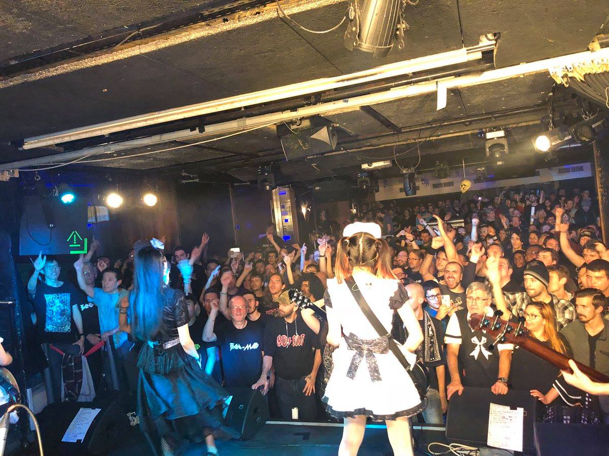 Elles sont venues comme chaque année ou presque saluer leur public parisien, cette fois-ci dans le cadre de leur tournée “WORLD DOMINATION TOUR 2018- Senkoku“. Le concert a eu lieu le 18 novembre au Backstage by the Mill, une salle pouvant accueillir jusqu’à 350 personnes. Cette salle ne présente toutefois pas la meilleure disposition, étant totalement plane et la scène étant assez basse, la deuxième moitié du public n’a que rarement la possibilité d’apercevoir les artistes.